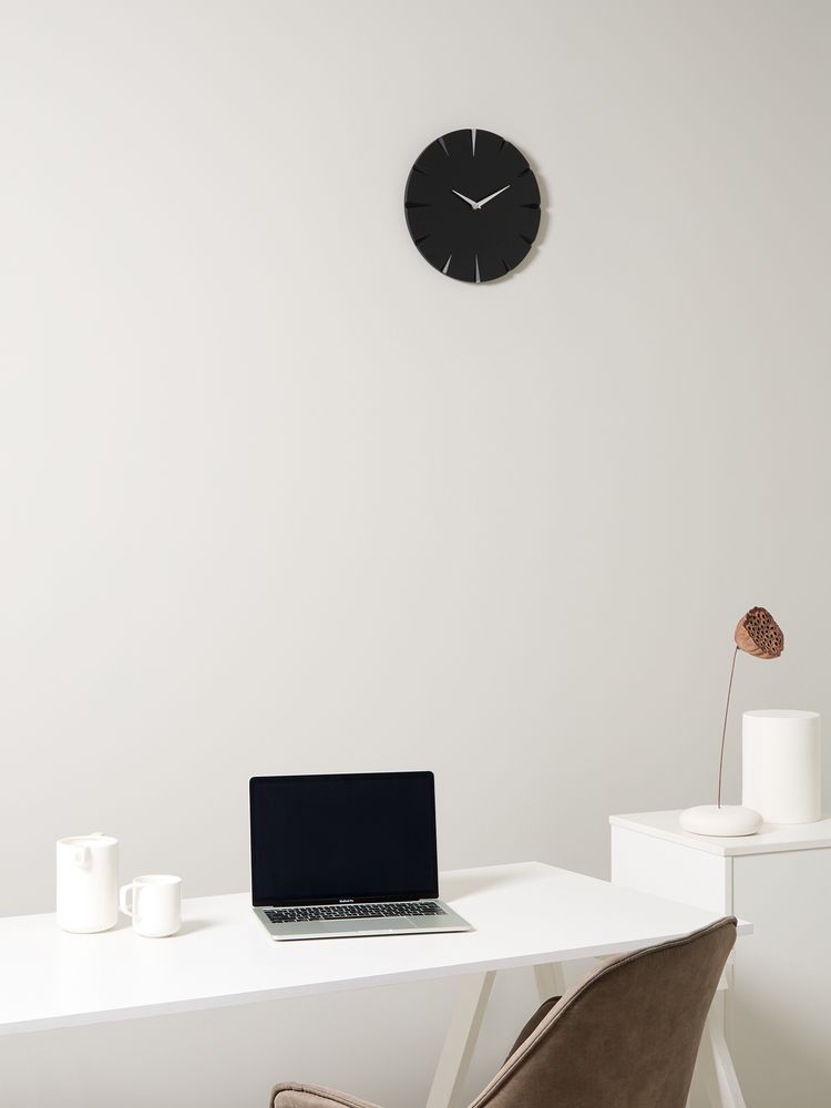 Часы Wallice — это чистая эстетика с ноткой легкой футуристичности. Это минималистично переосмысленная классика: настенные часы в тотальном монохроме с аккуратными отметками для индикации времени и контрастными стрелками освобождены от всего лишнего, а потому впишутся в любой современный интерьер.