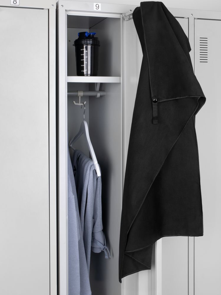 Полотенце упаковано в сумку-чехол из прочной ткани с плетением рипстоп и дышащим сетчатым верхом. Чехол также можно использовать в качестве несессера для косметических и купальных принадлежностей.