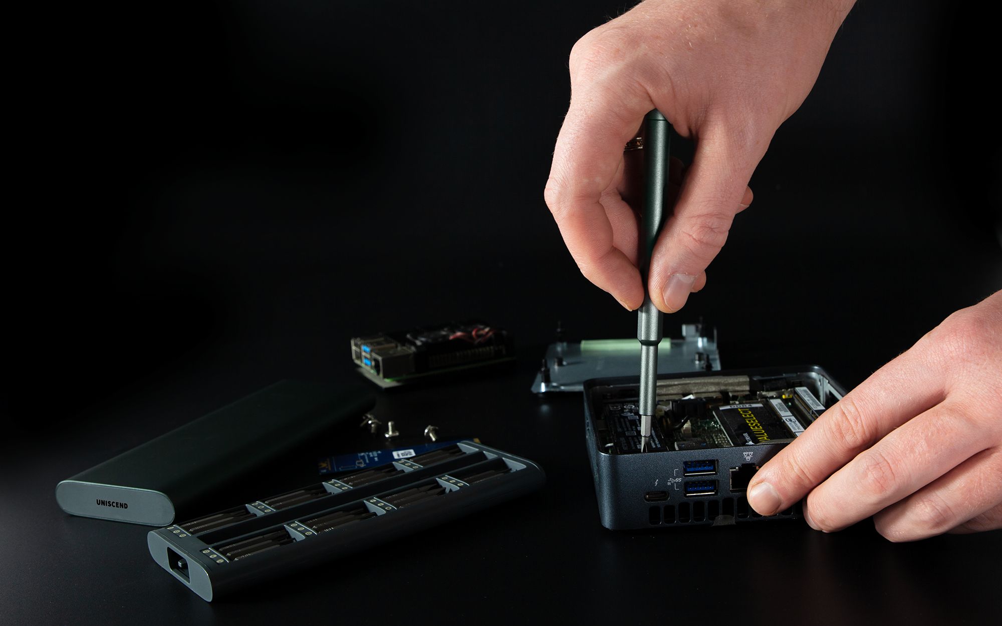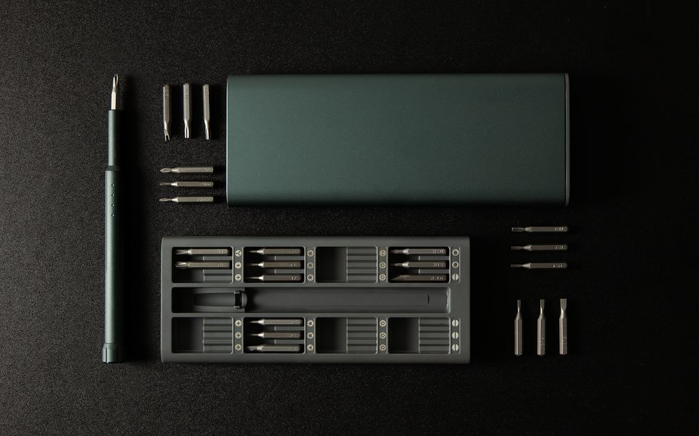 В комплекте магнитный держатель и 24 биты: