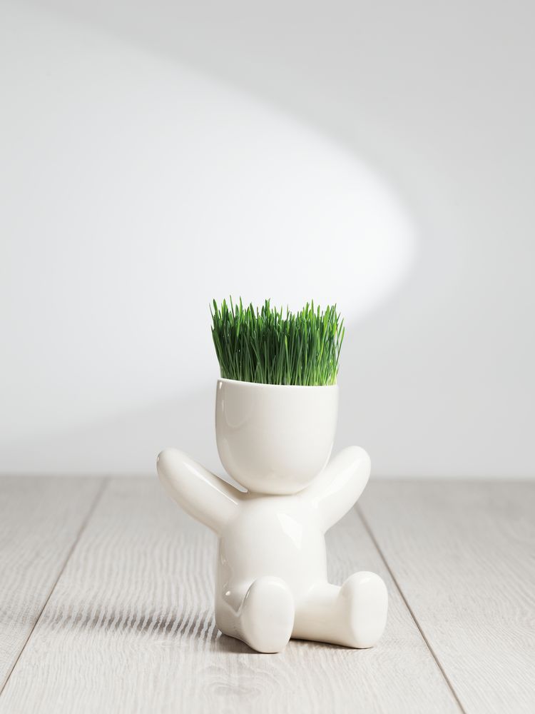В комплекте фигурка, грунт, семена теневыносливой газонной травы и инструкция для посадки.
