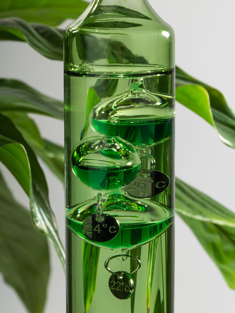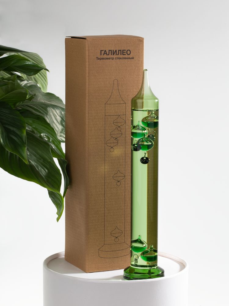Термометр Галилео в цветном стеклянном корпусе с прочным плоским основанием — это не только интересный и полезный сувенир, но и элемент современного дизайна.