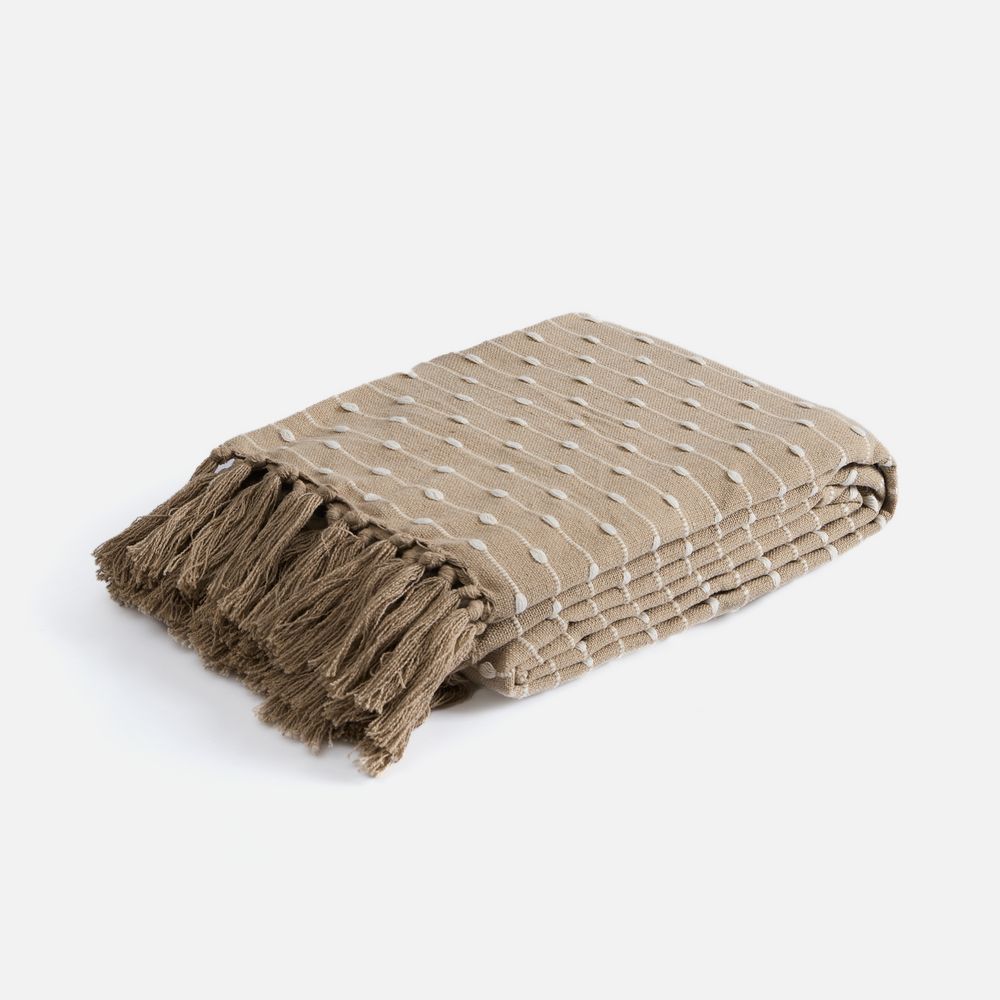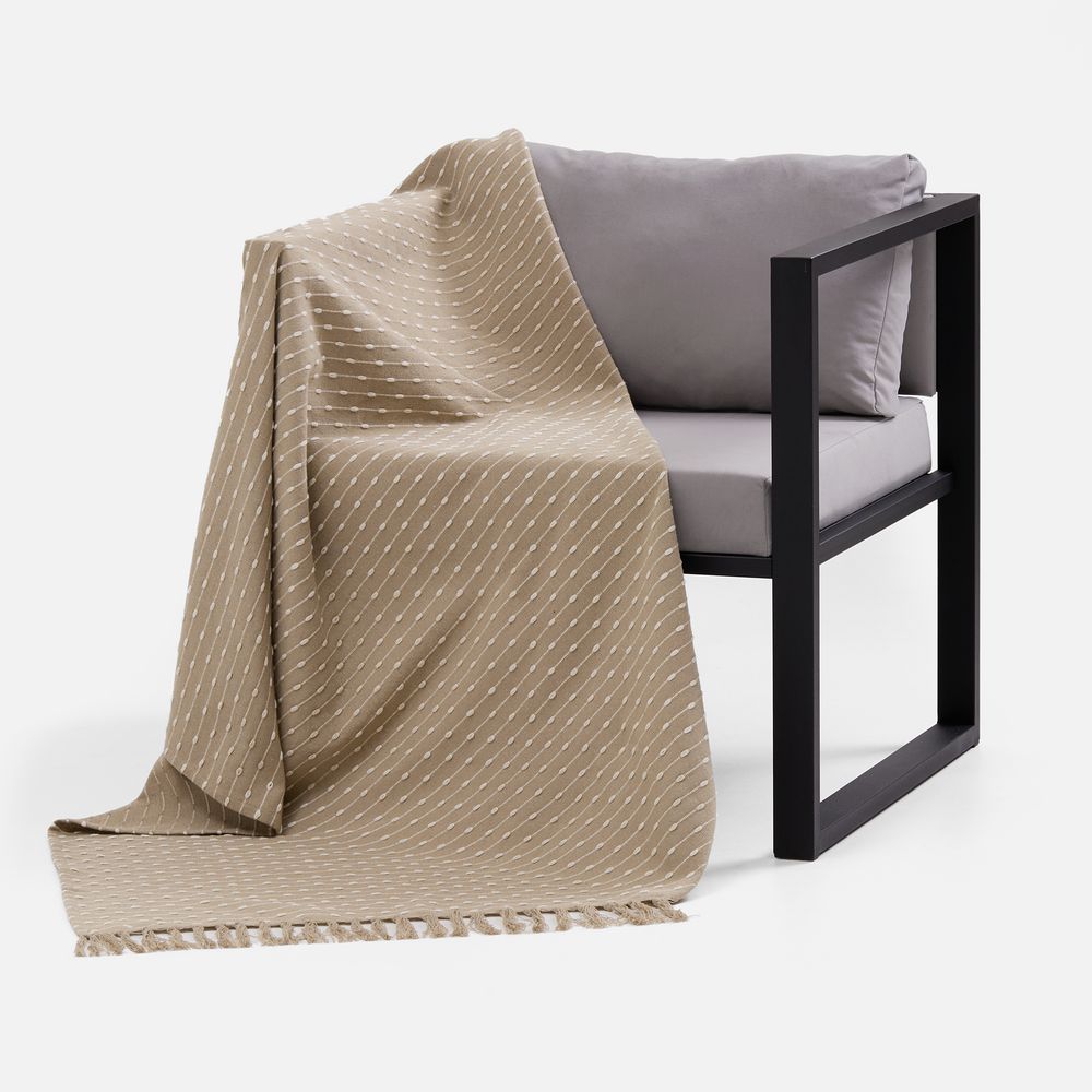 Смесовый состав пледа — 80% хлопка и 20% полиэстера — объединяет лучшее из мира натуральных и синтетических материалов. Хлопок дает натуральную мягкость и дышащую текстуру, а полиэстер добавляет прочности, помогает ткани не мяться, быстрее сохнуть и долго сохранять форму.