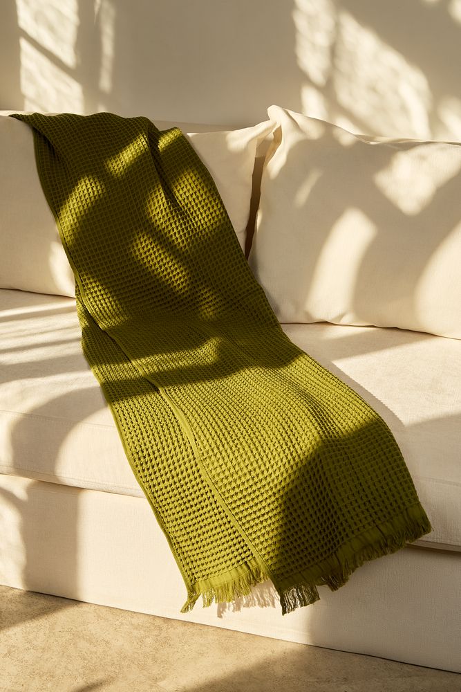 Создан из натурального хлопка с выраженной текстурой вафельного переплетения. Он легкий, дышащий и удивительно приятный на ощупь — идеальный баланс между уютом и минимализмом.