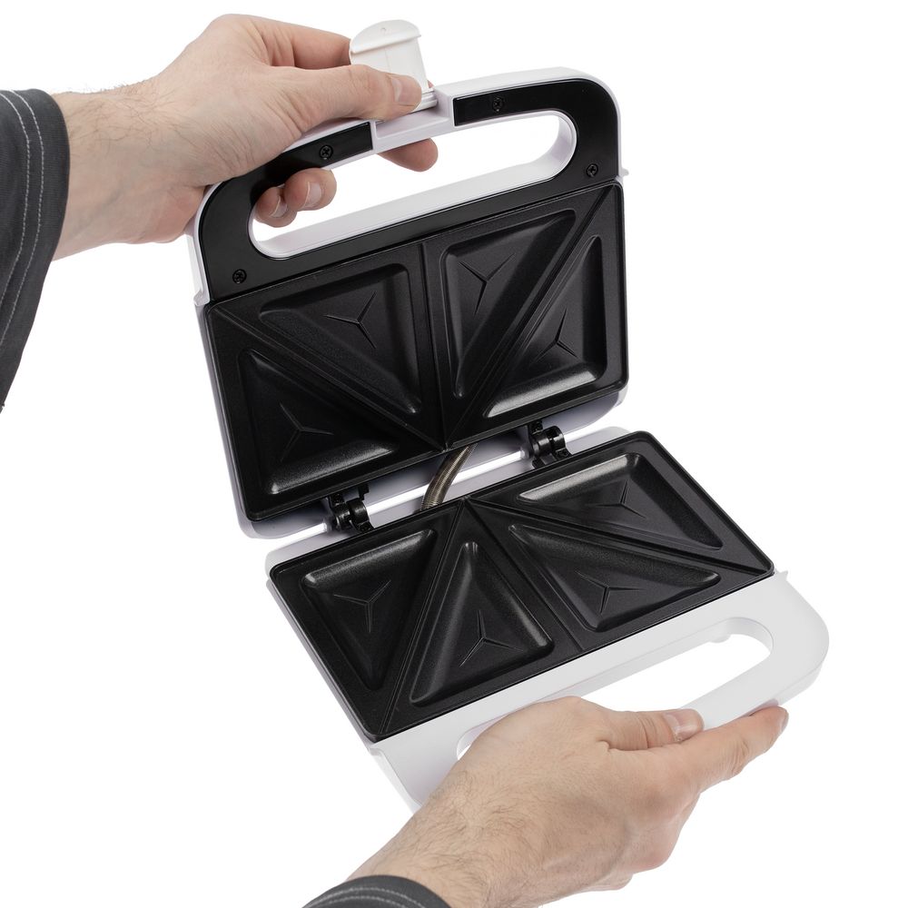 Сэндвичница быстро разогревается и поджаривает бутерброд в считаные минуты. Равномерно прогревающиеся панели с антипригарным покрытием позволяют быстро и качественно приготовить вкусную закуску с разными начинками, а затем легко очистить прибор.