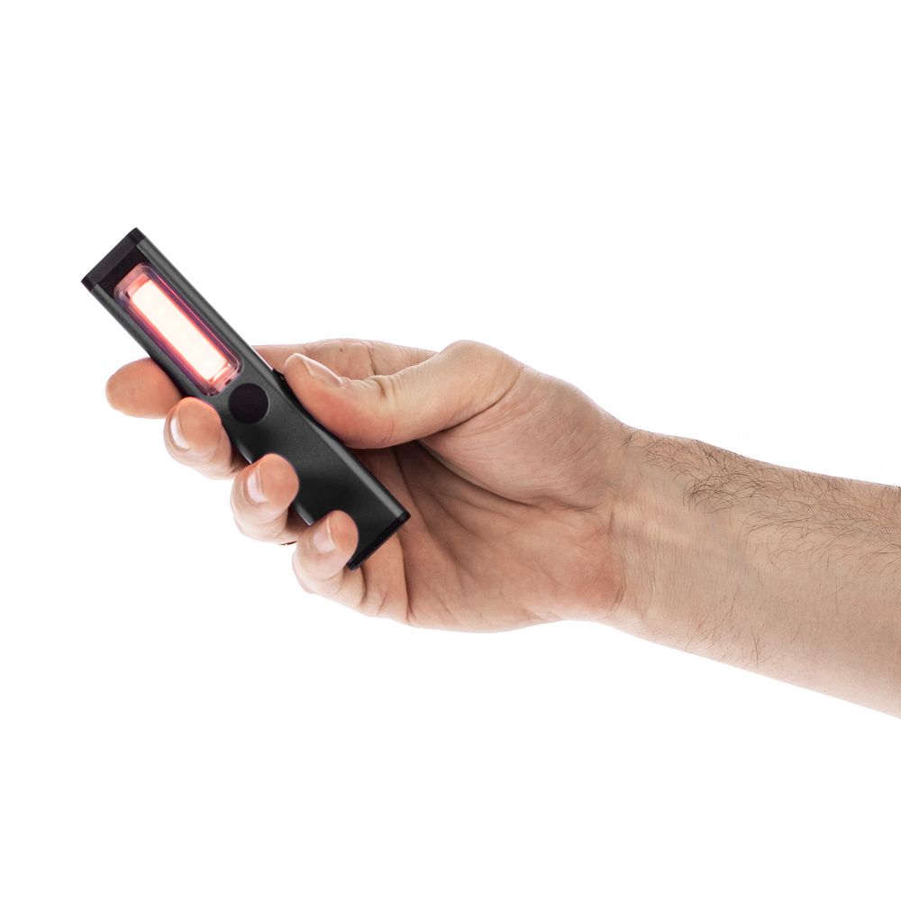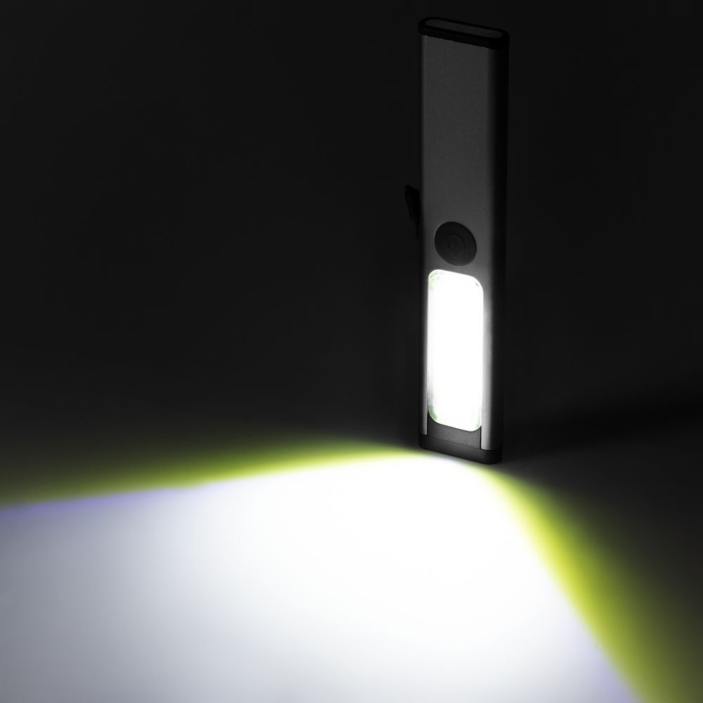 Плавная регулировка яркости осуществляется удержанием центральной кнопки при включенном устройстве — это позволяет точно адаптировать освещение под рабочие условия. Магнит в основании фонарика дает возможность зафиксировать фонарик на металлической поверхности и освободить руки для выполнения задач.