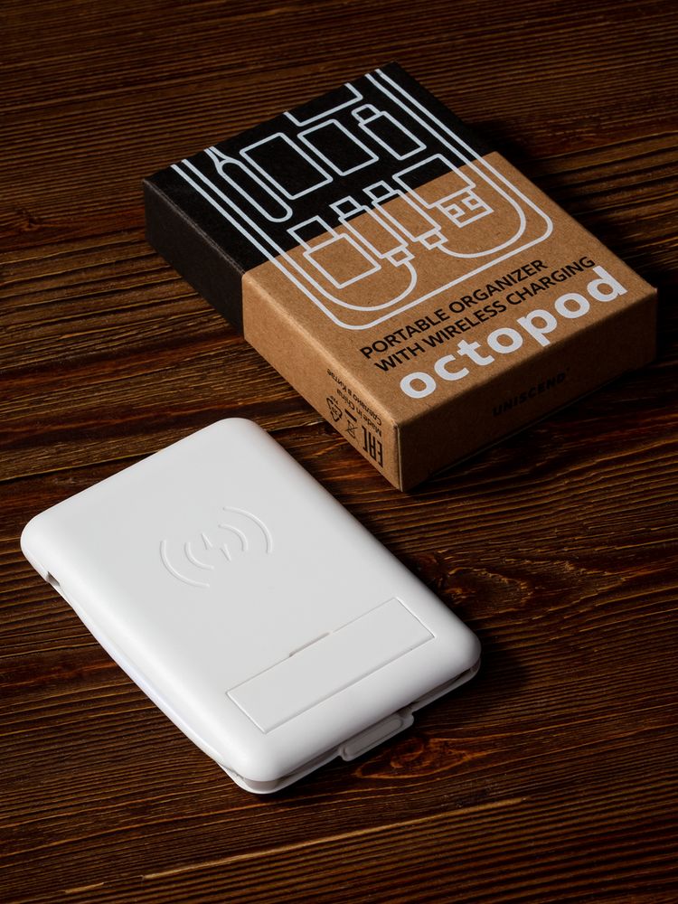У нас Вы можете заказать Органайзер с беспроводной зарядкой и набором адаптеров Octopod, белый качественного бренда Uniscend с логотипом по выгодной цене. Выберите способ нанесения логотипа и добавьте товар в корзину. Окончательную полную стоимость с брендированием по Вашему эскизу и доставкой сообщит наш менеджер после оформления заказа.