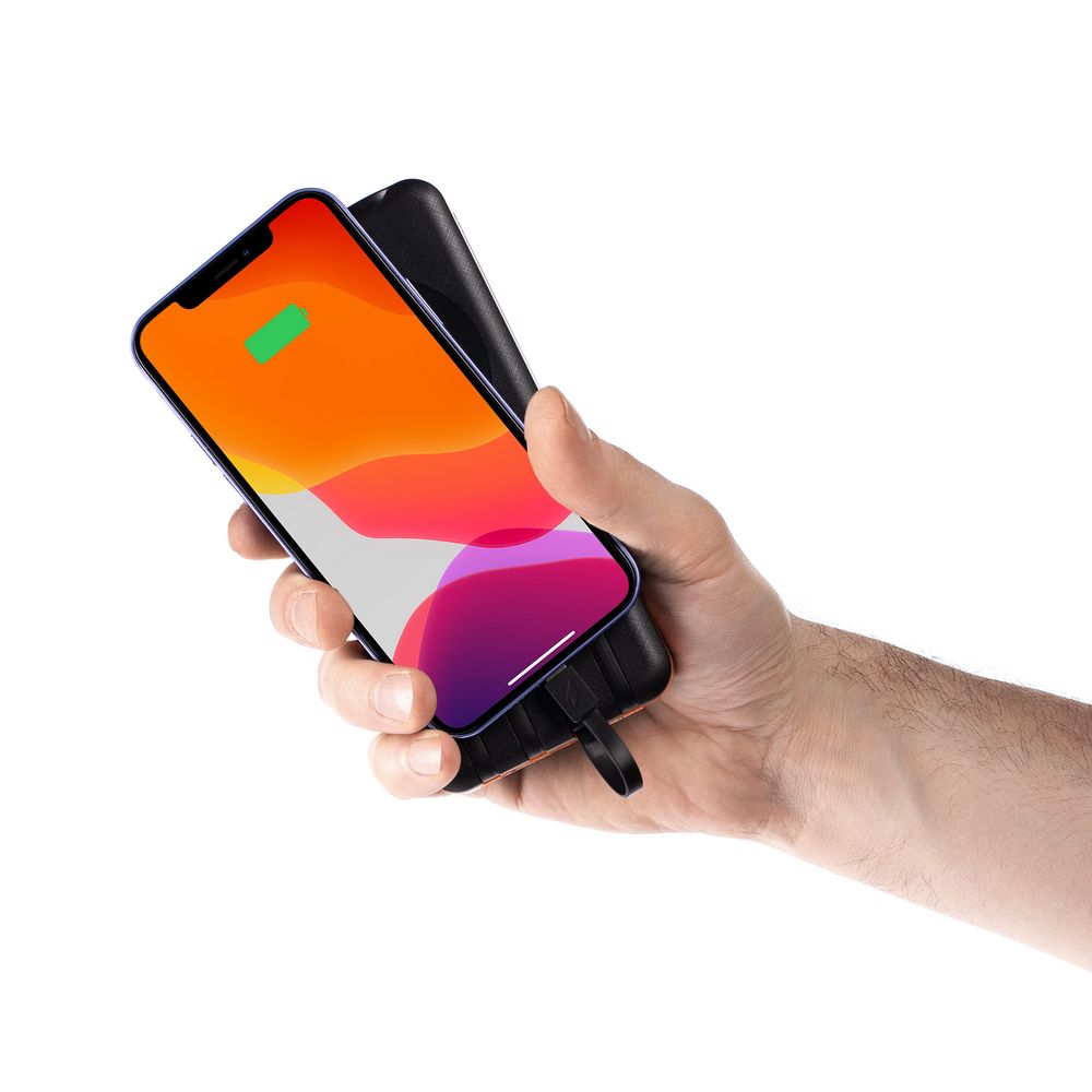 – гнездо USB-A и кабели Type-C, micro USB, Lightning: 5 В, 2,1 A - Для заряда современного (от 2022 года) смартфона настоятельно рекомендуется использовать рекомендуемый Apple USB-A/Type-C кабель. Встроенные кабели аккумулятора могут не работать с некоторыми iOS-устройствами Apple (iPhone 15Pro, 16,17)