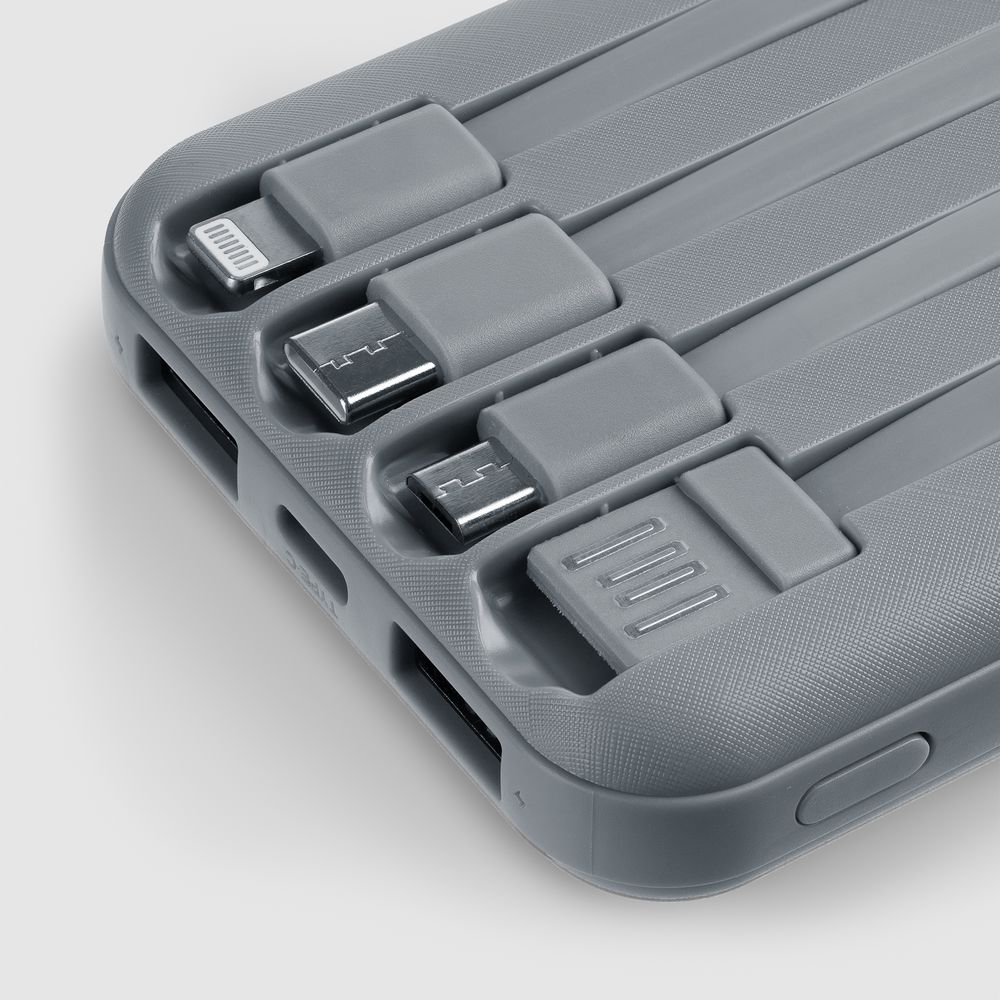 Интересная особенность аккумуляторов Omni — совершенно автономная конструкция: встроенные кабели позволяют заряжать как самые разные электронные устройства, так и сам аккумулятор. Если же смартфон поддерживает беспроводной заряд, то кабель вообще не нужен. Наглядный индикатор заряда в процентах.