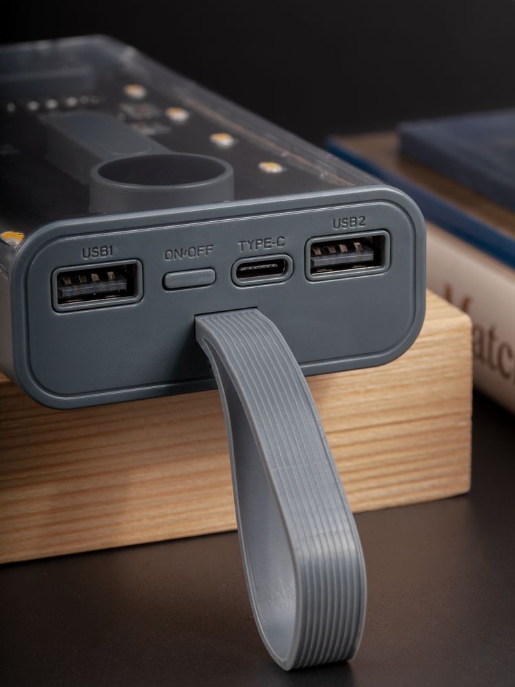 – USB-A (гнездо на корпусе), Type-C, Lightning, Micro USB (кабели): 5 В, 2 A (до 3 А суммарно при зарядке двух устройств) - Время заряда: от 6 до 10 часов (зависит от параметров зарядного устройства)
