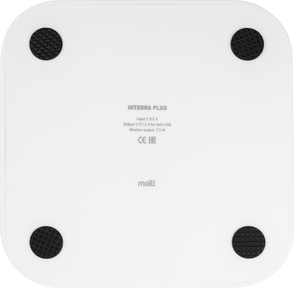 У нас Вы можете заказать Беспроводное зарядное устройство Interra Plus, белое качественного бренда Molti с логотипом по выгодной цене. Выберите способ нанесения логотипа и добавьте товар в корзину. Окончательную полную стоимость с брендированием по Вашему эскизу и доставкой сообщит наш менеджер после оформления заказа.