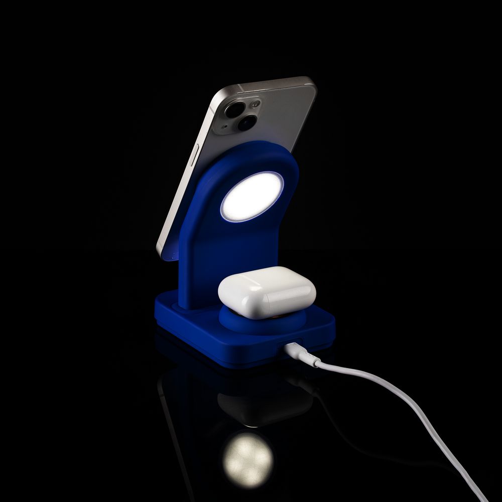 iPhone 12–15 c магнитами MagSafe могут удерживаться на основной области станции. Ранние или компактные модели iPhone или смартфоны с диагональю 5,7–6' на OS Android можно оснастить специальным адаптером Magmate или чехлом со встроенным кольцевым магнитом сзади.