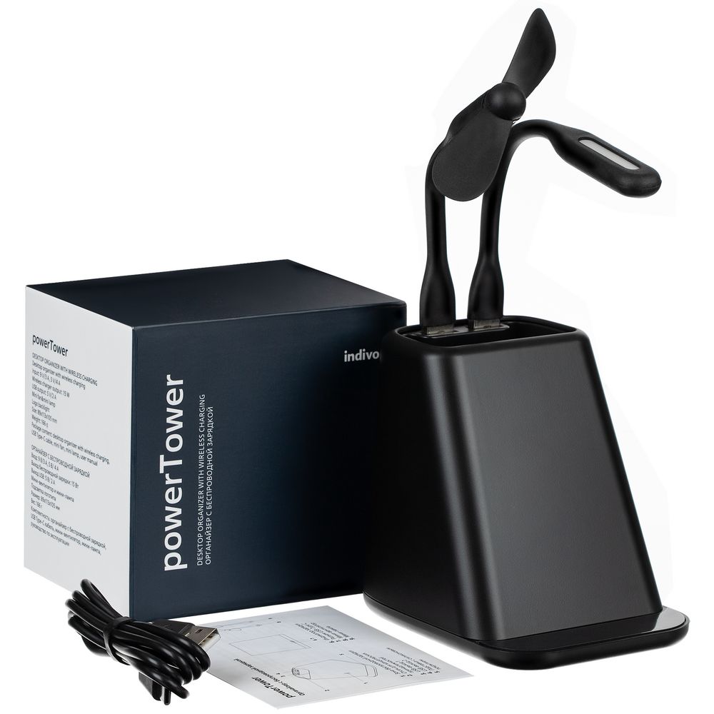 У нас Вы можете заказать Настольный органайзер с зарядкой, лампой, вентилятором и подсветкой логотипа powerTower, черный качественного бренда Indivo с логотипом по выгодной цене. Выберите способ нанесения логотипа и добавьте товар в корзину. Окончательную полную стоимость с брендированием по Вашему эскизу и доставкой сообщит наш менеджер после оформления заказа.