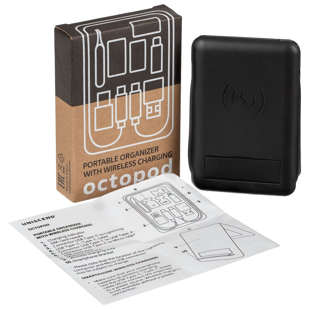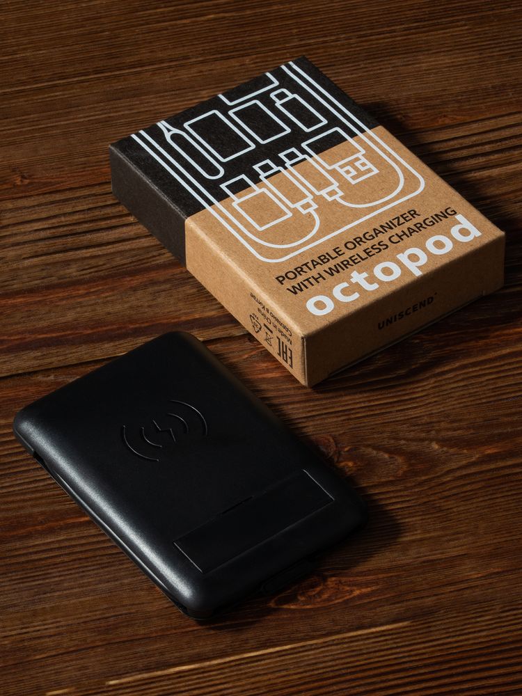 У нас Вы можете заказать Органайзер с беспроводной зарядкой и набором адаптеров Octopod, черный качественного бренда Uniscend с логотипом по выгодной цене. Выберите способ нанесения логотипа и добавьте товар в корзину. Окончательную полную стоимость с брендированием по Вашему эскизу и доставкой сообщит наш менеджер после оформления заказа.