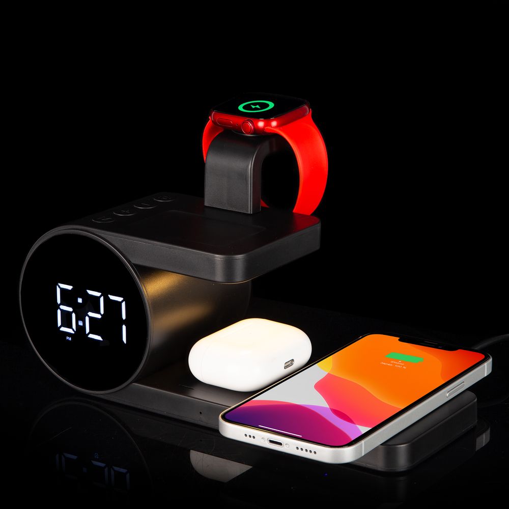 У нас Вы можете заказать Станция беспроводной зарядки с часами fullStack, черная качественного бренда Indivo с логотипом по выгодной цене. Выберите способ нанесения логотипа и добавьте товар в корзину. Окончательную полную стоимость с брендированием по Вашему эскизу и доставкой сообщит наш менеджер после оформления заказа.