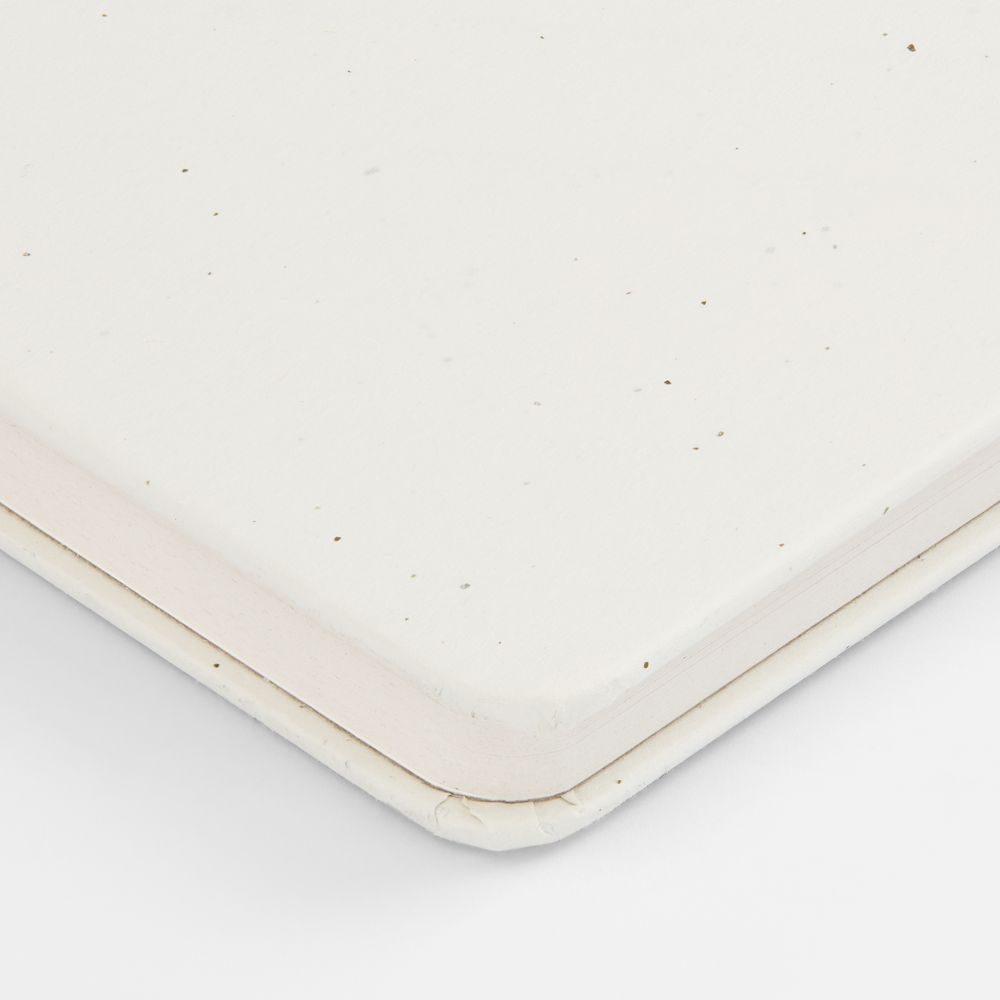 Бумага и обложка произведены из переработанных пакетов из-под молока. Обложка из картона плотностью 140 г/м² .