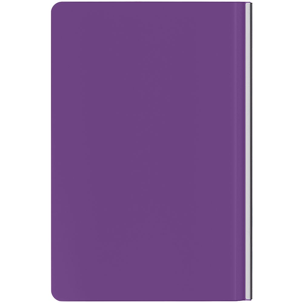Ежедневник с гибкой обложкой и металлическим корешком, выполнен из материала Soft Touch, фиолетовый UU, дополнен серебристым обрезом блока и ляссе.