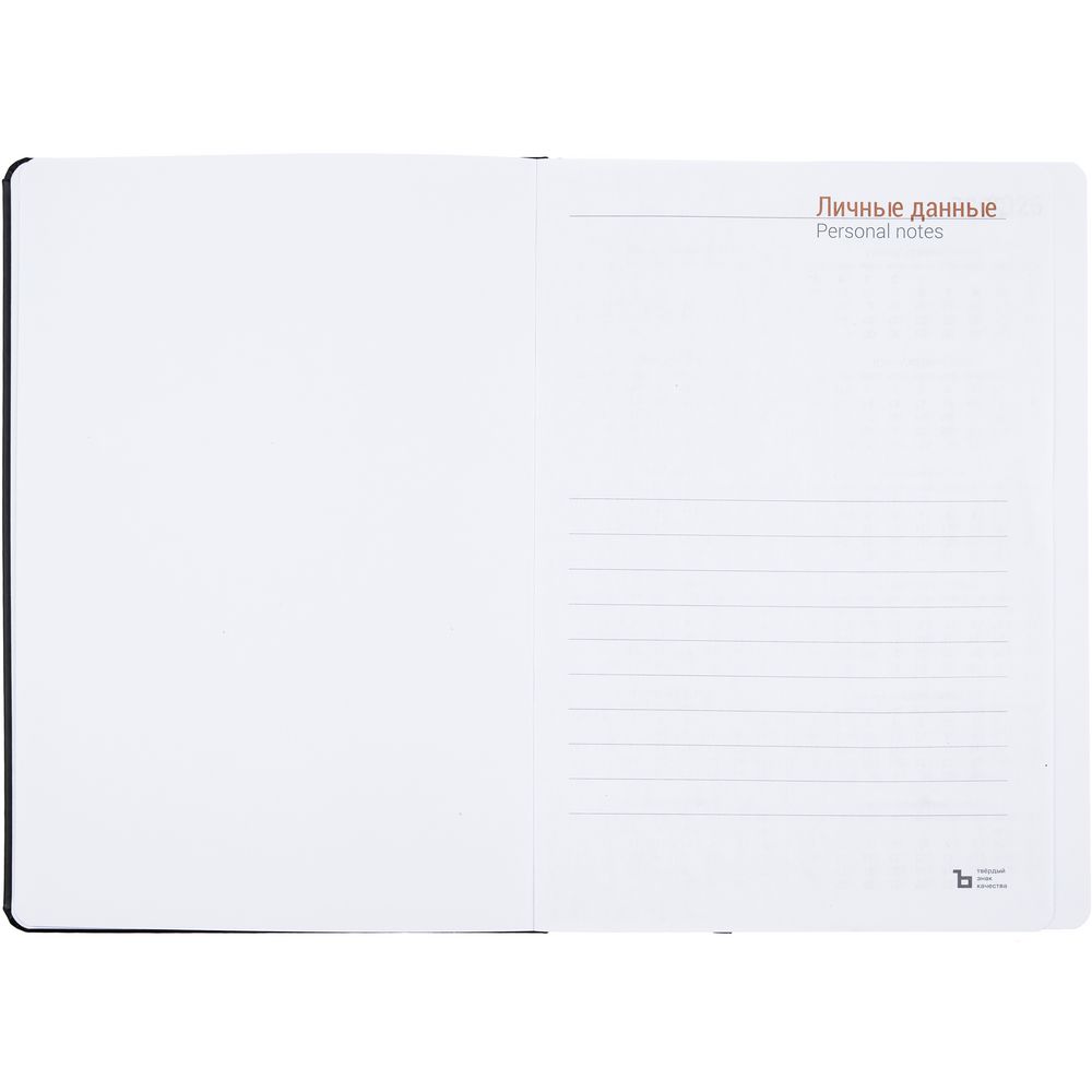 Ежедневник с твердой обложкой, выполнен из материала Latte, черный АА, дополнен ляссе в цвет обложки.