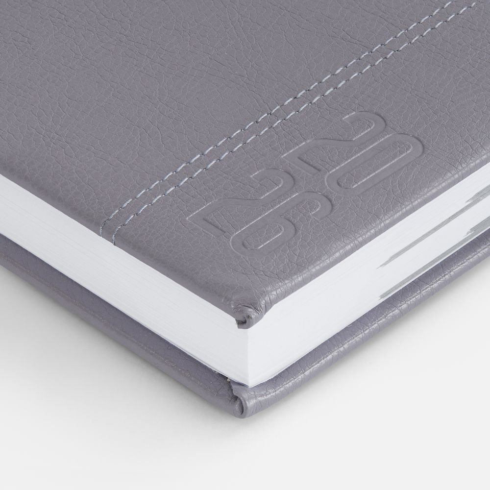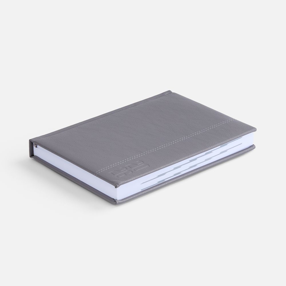Ежедневник с твердой обложкой с поролоном из искусственной кожи, дополнен декоративной строчкой, капталом и ляссе в цвет ежедневника.