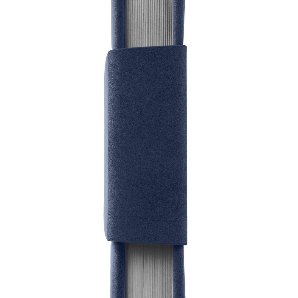 Ежедневник с твердой обложкой c поролоном, выполнен из материала Nubuck, темно-синий ХХ, дополнен капталом и ляссе темно-синего цвета. Застежка — хлястик на магните.