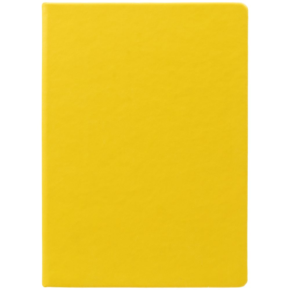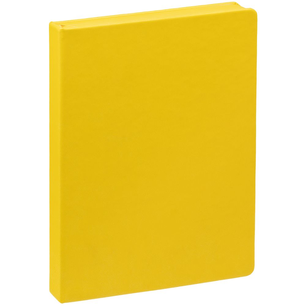 Ежедневник с твердой обложкой и тонированным обрезом. Выполнен из материала Latte, желтый, дополнен ляссе в цвет обложки.
