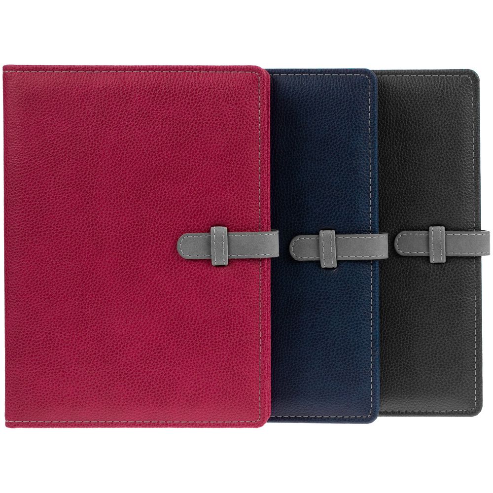Ежедневник в мягкой суперобложке, выполнен из материала La Fite, малиновый LL, дополнен ляссе белого цвета.