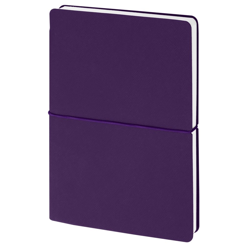 Ежедневник с гибкой обложкой выполнена из материала Nice Touch, фиолетовый и Latte, фиолетовыйl (внутренняя часть обложки), дополнен горизонтальной резинкой в цвет обложки. Внутри корешка — специальное место для крепления ручки размером до 15х1 см.