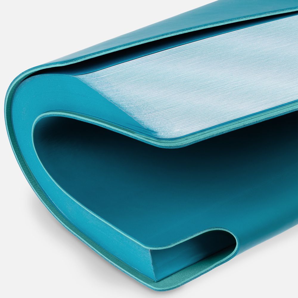 Гибкая обложка выполнена из материала Soft Touch, цвет морской волны II и Latte, цвет морской волны II (внутренняя часть обложки). Внутри корешка — специальное место для крепления ручки размером до 15х1 см.