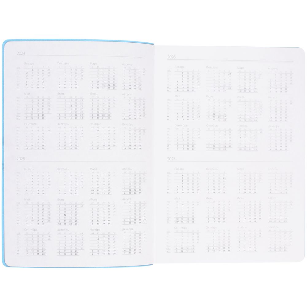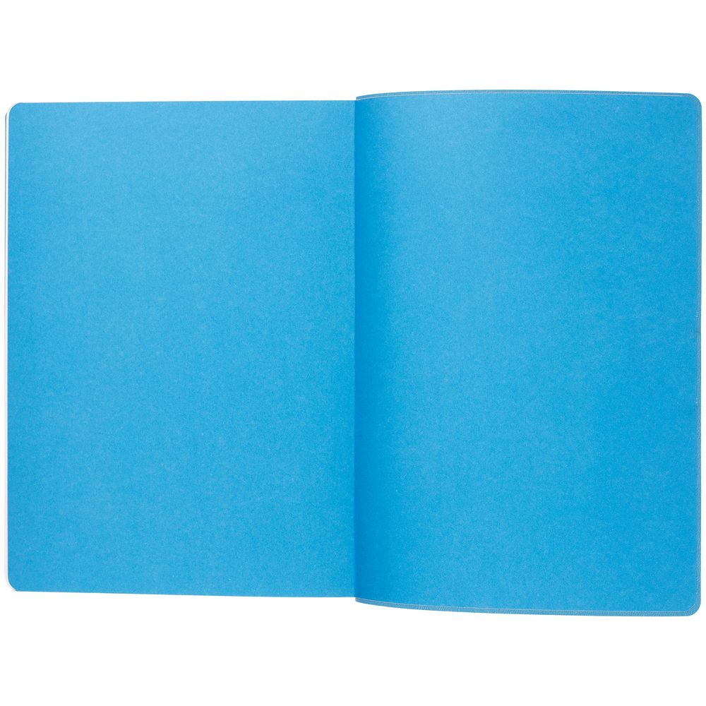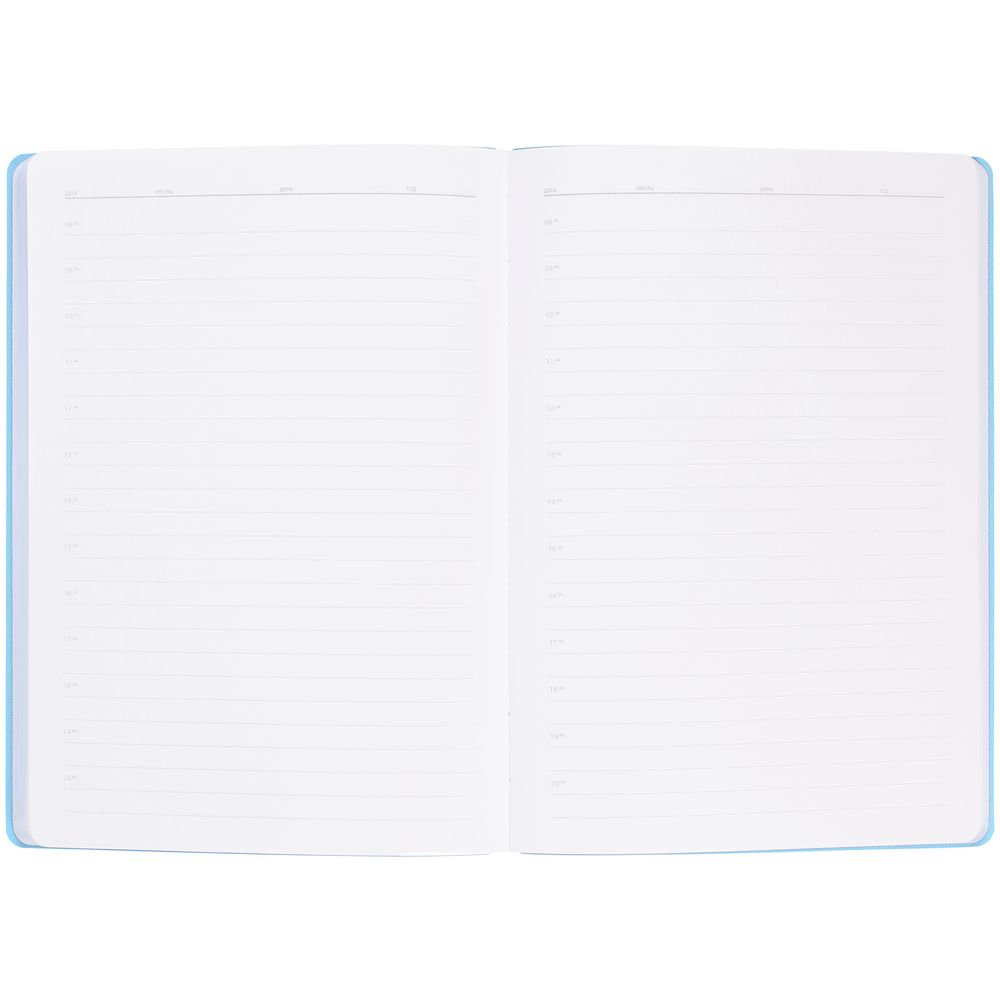 Гибкая обложка выполнена из материала Soft Touch, голубой JJ и Latte, голубой JJ (внутренняя часть обложки). Внутри корешка — специальное место для крепления ручки размером до 15х1 см.