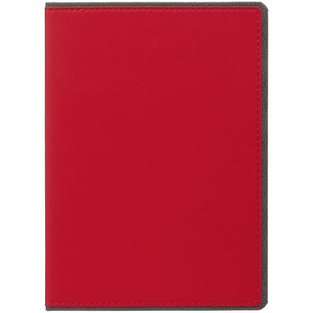 Ежедневник с твердой обложкой, выполнен из материалов Soft Touch Ultra, красный РР и La Fite, серый СС. Ляссе темно-серого цвета.