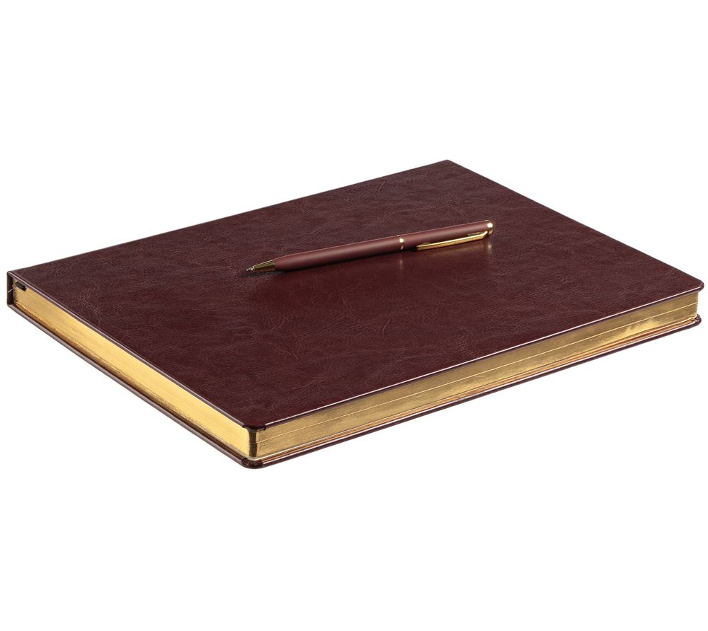 Статусный ежедневник с твердой обложкой и металлизированным обрезом, выполнен из материала Nebraska, бордовый QQ.
