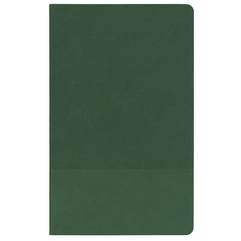 Ежедневник с гибкой обложкой, выполнен из материала Canyon, зеленый FF, дополнен ляссе в цвет обложки. Блинтовое тиснение на обложке создает эффект вязаного полотна.