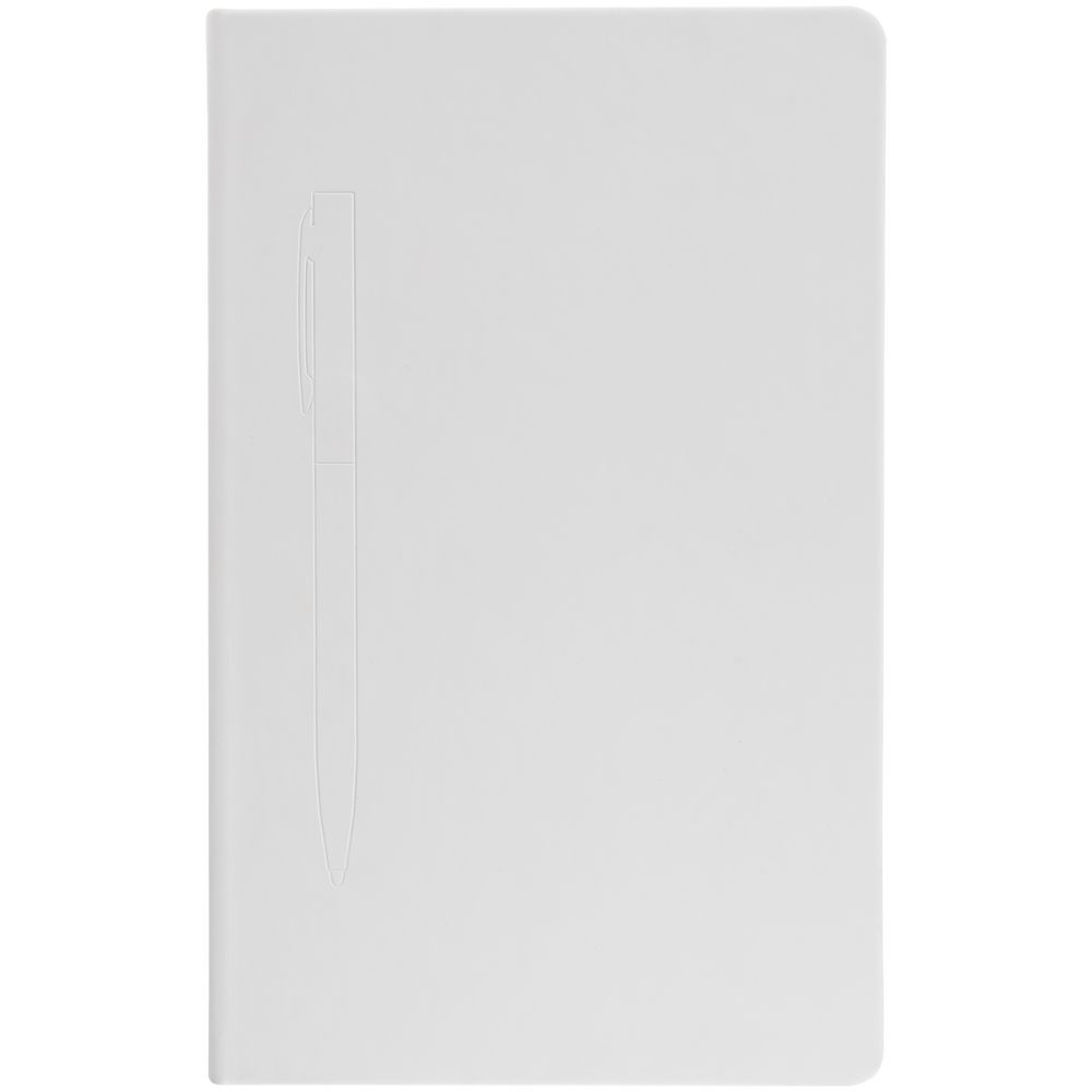 Ежедневник в твердой обложке, выполненной из материала Soft Touch, белый ВВ, дополнен атласным ляссе и магнитом, удерживающим ручку.