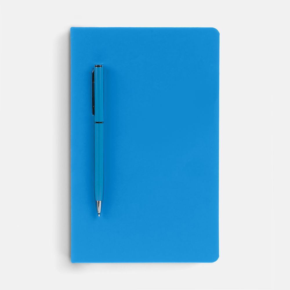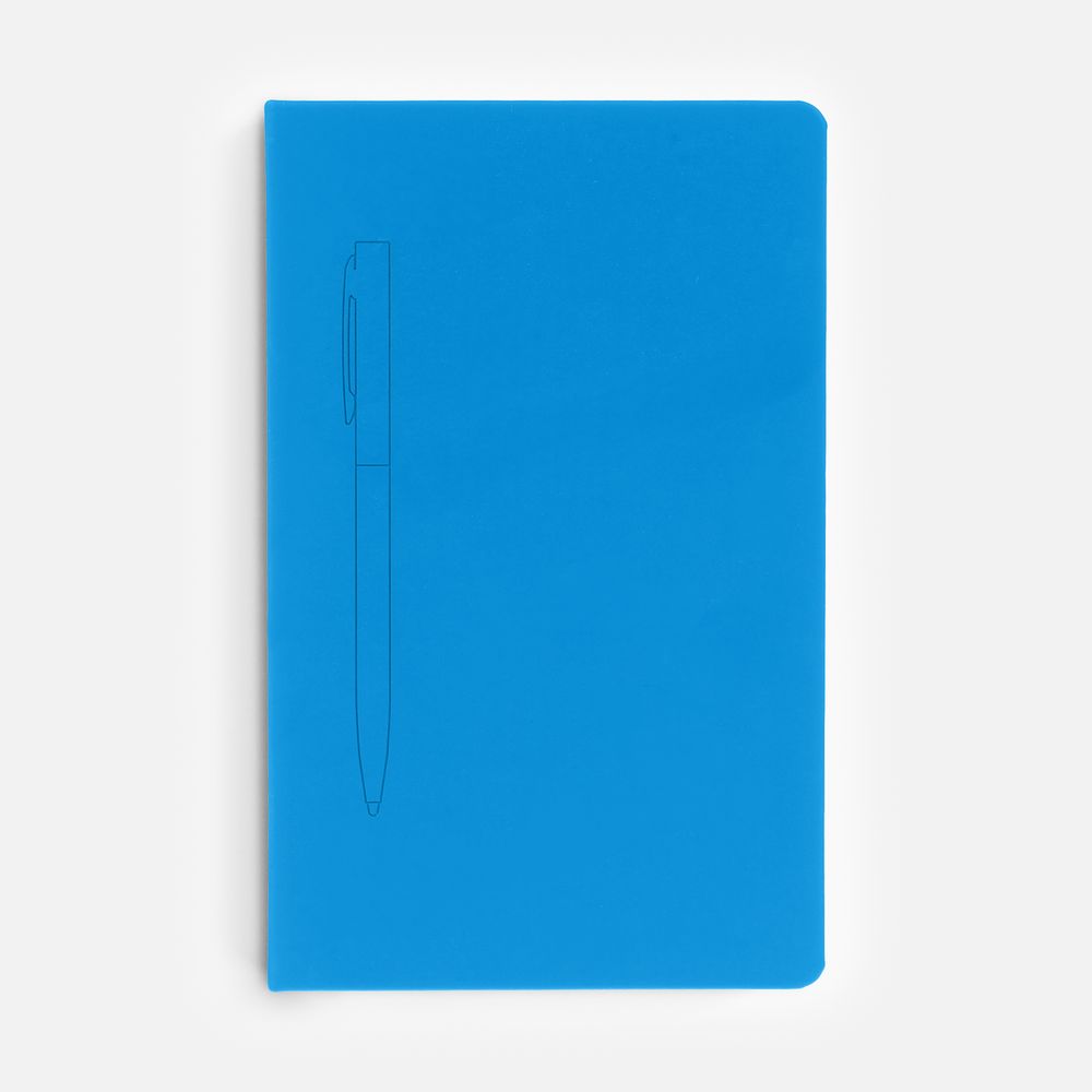 Ежедневник в твердой обложке, выполненной из материала Soft Touch Ultra, голубой JJ, дополнен атласным ляссе и магнитом, удерживающим ручку.