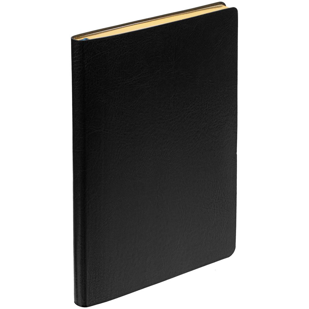 Ежедневник с гибкой обложкой, выполнен из материала Nebraska, черный АА, дополнен ляссе черного цвета.