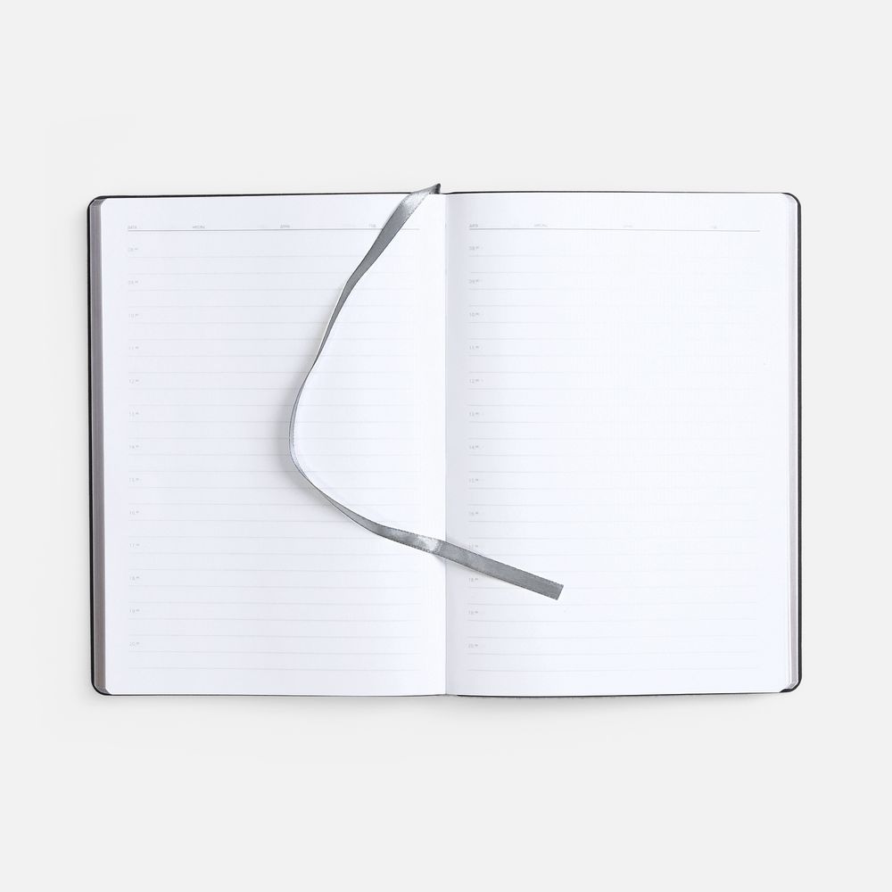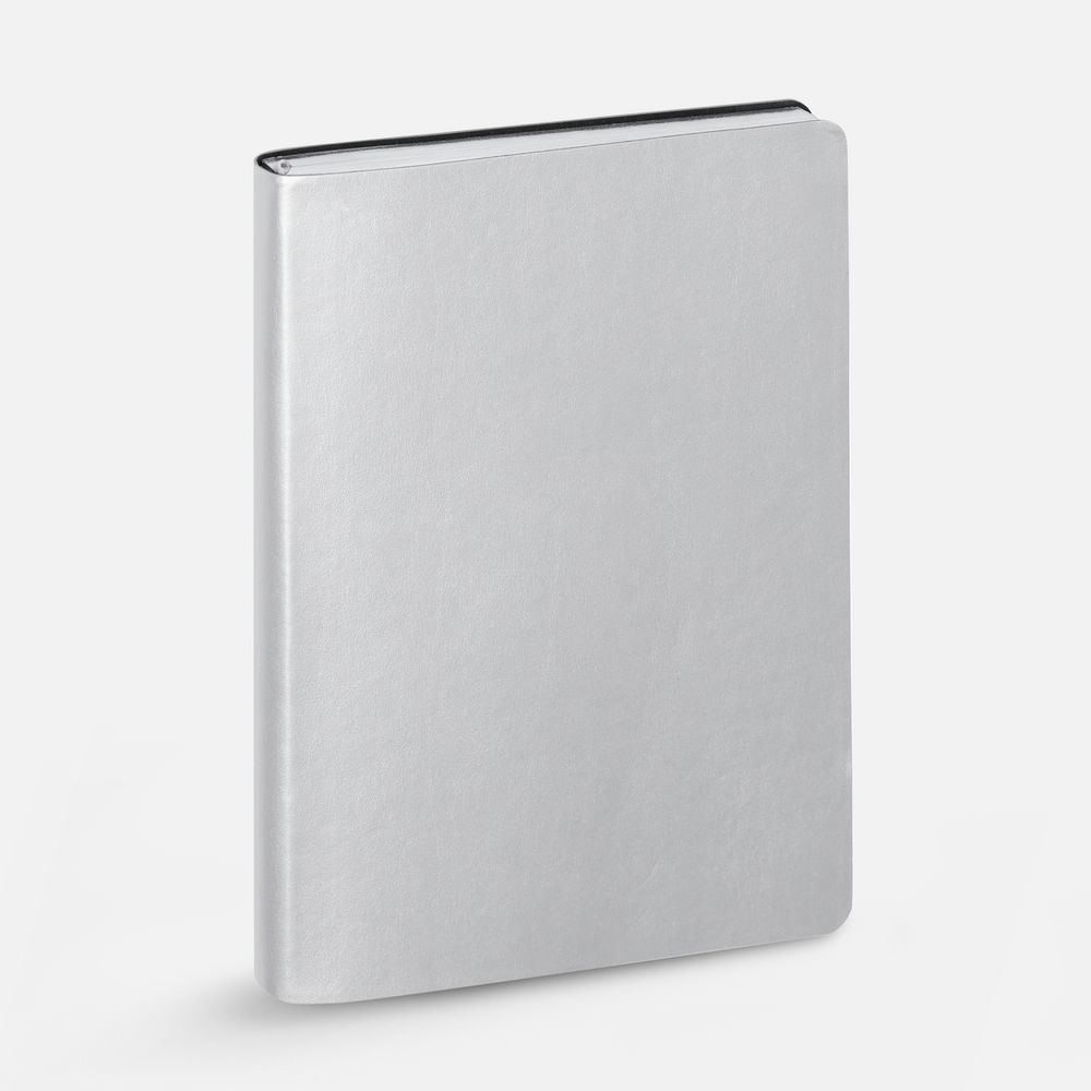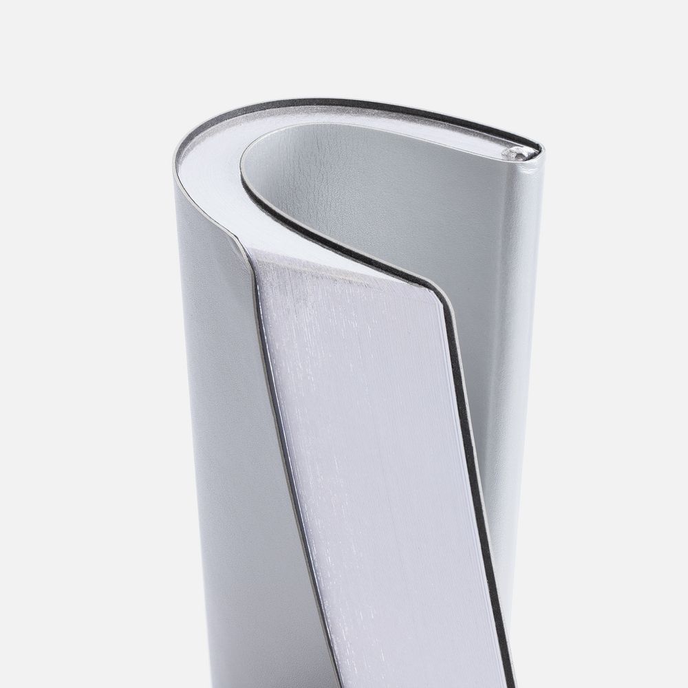 Ежедневник с гибкой обложкой, выполнен из материала Waltz, серебро DD, дополнен ляссе в цвет обложки.