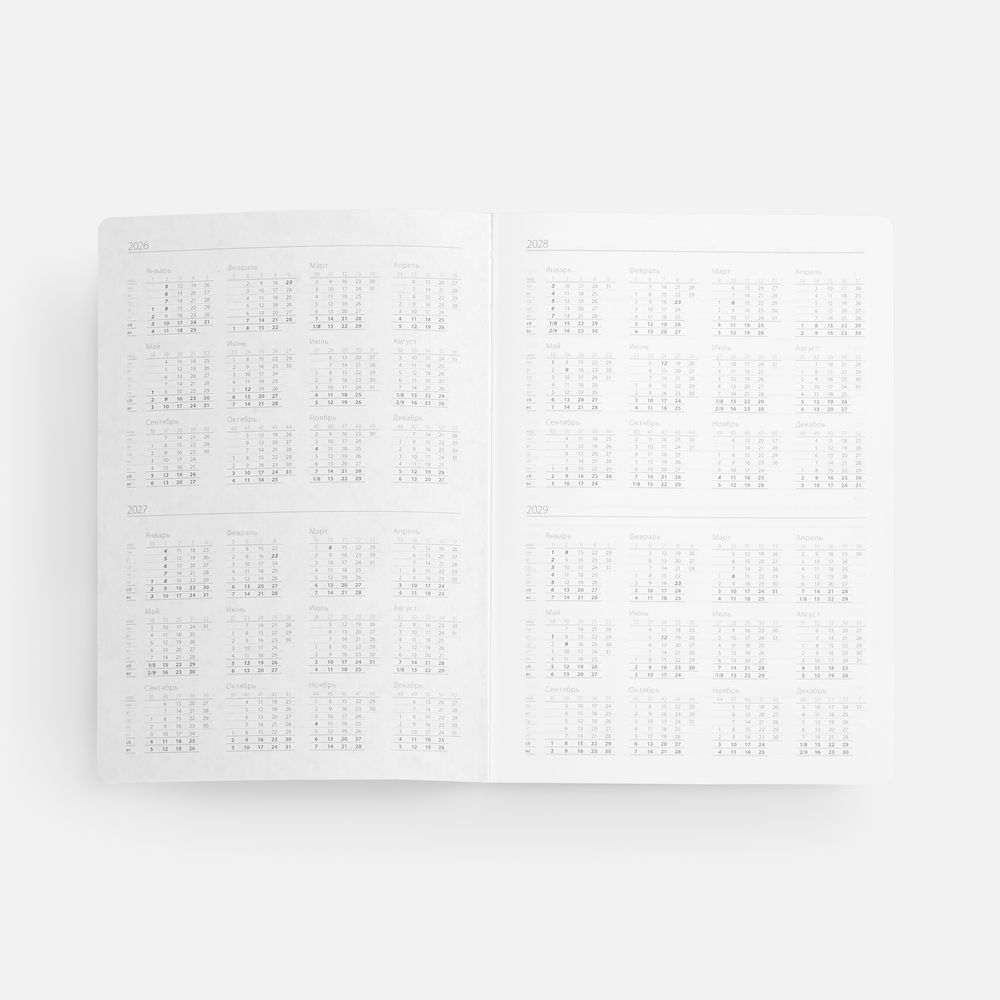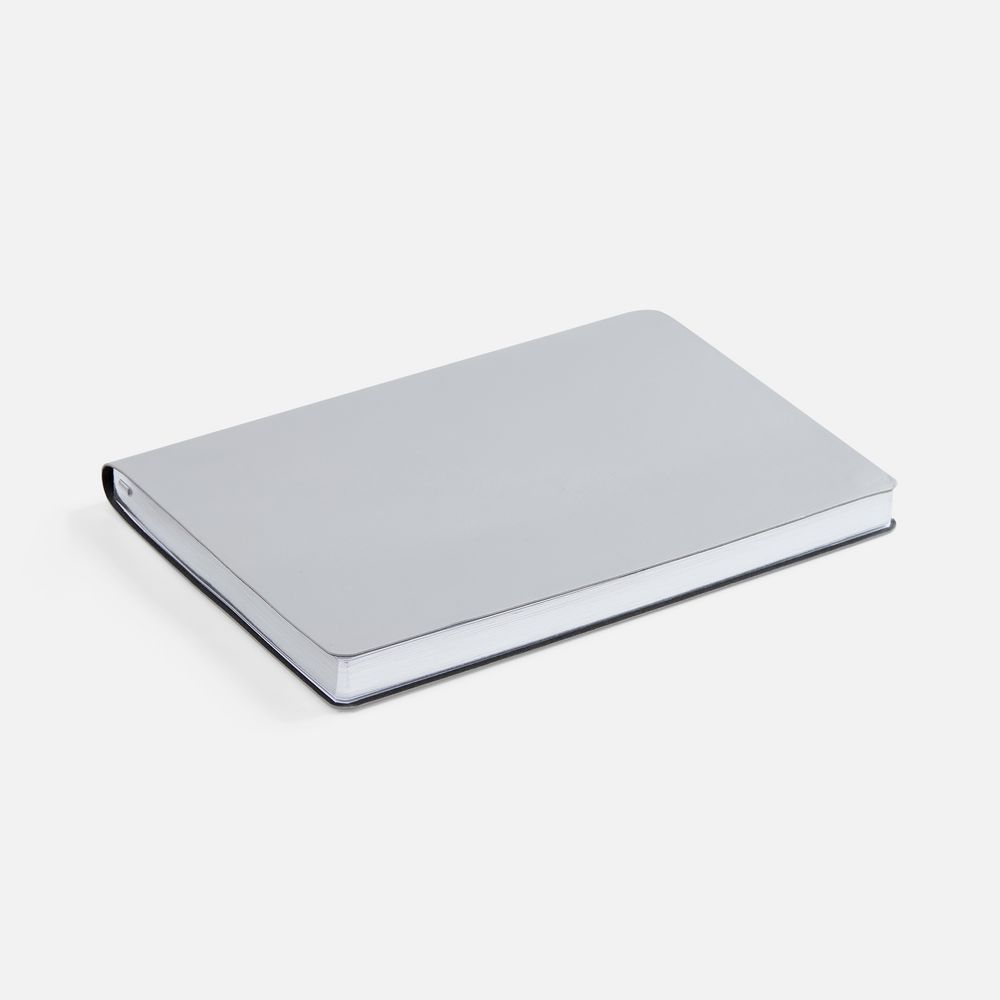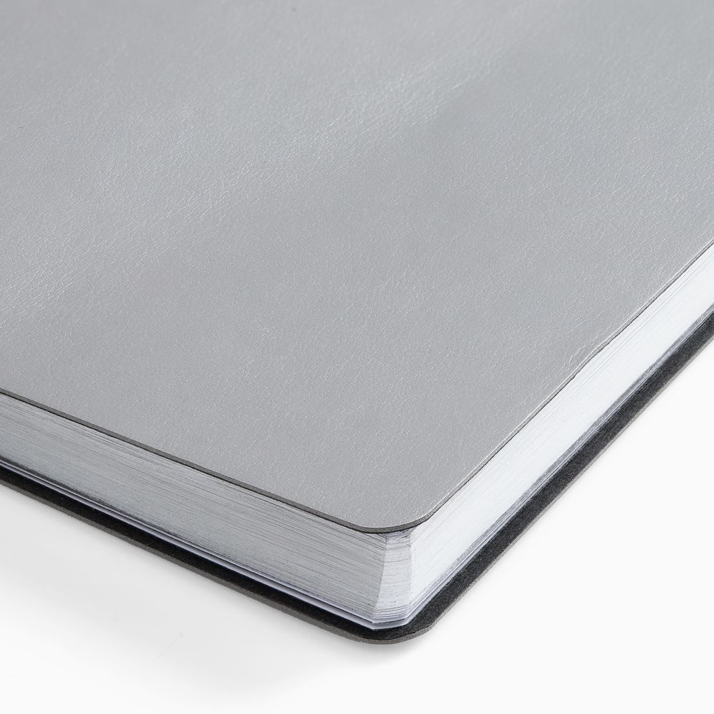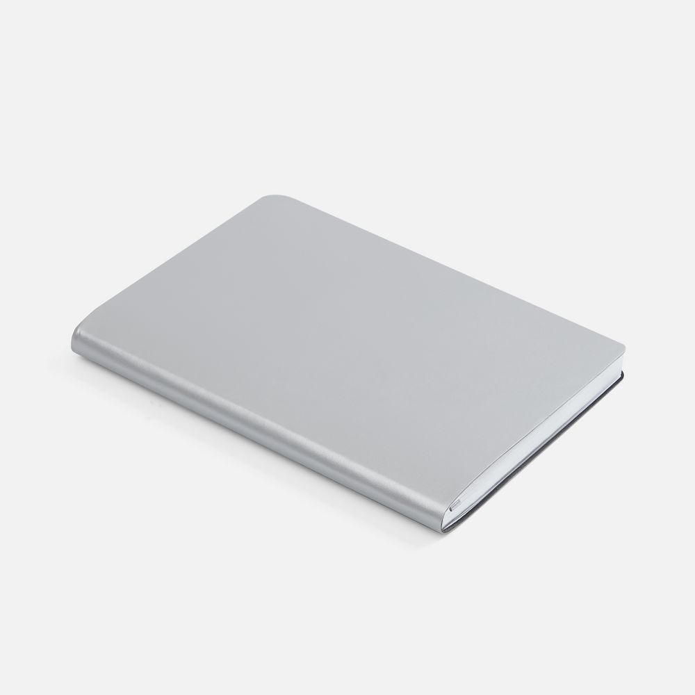 Ежедневник с гибкой обложкой, выполнен из материала Waltz, серебро DD, дополнен ляссе в цвет обложки.