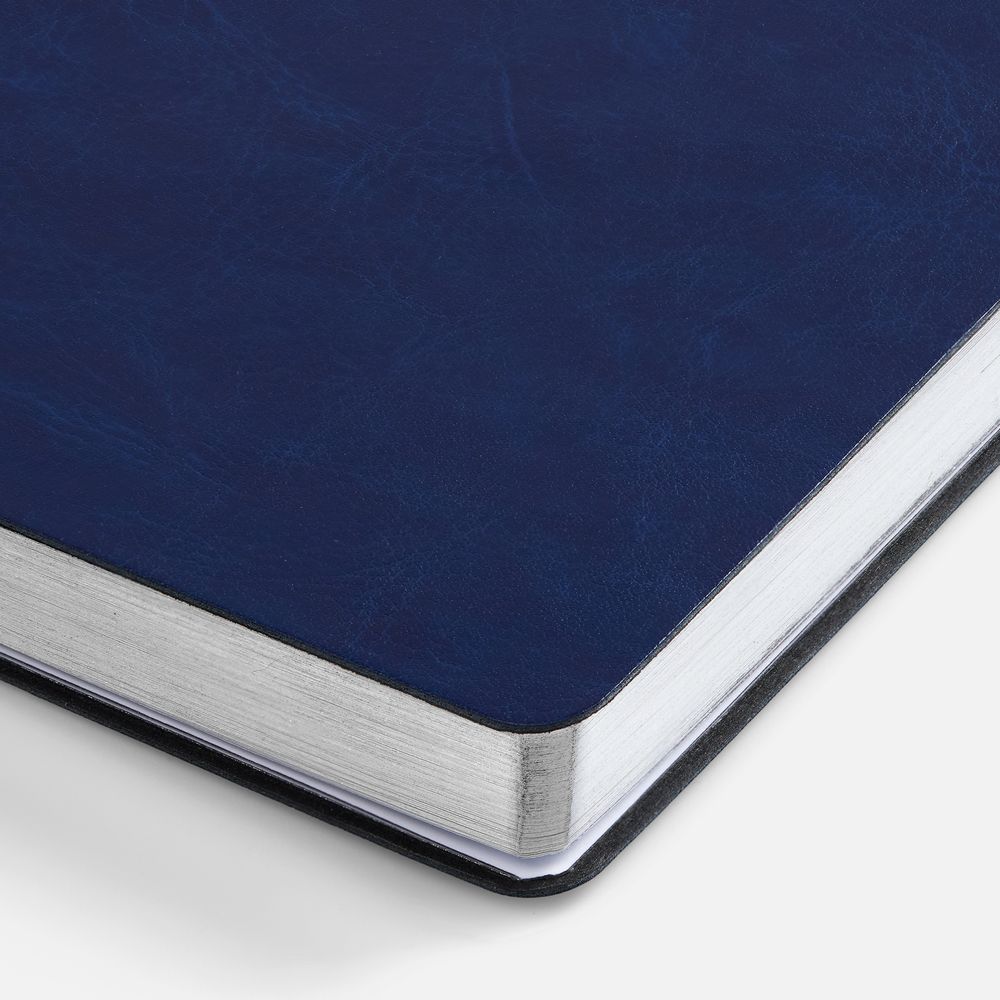 Ежедневник с гибкой обложкой, выполнен из материала Nebraska, синий HH, дополнен ляссе темно-синего цвета.