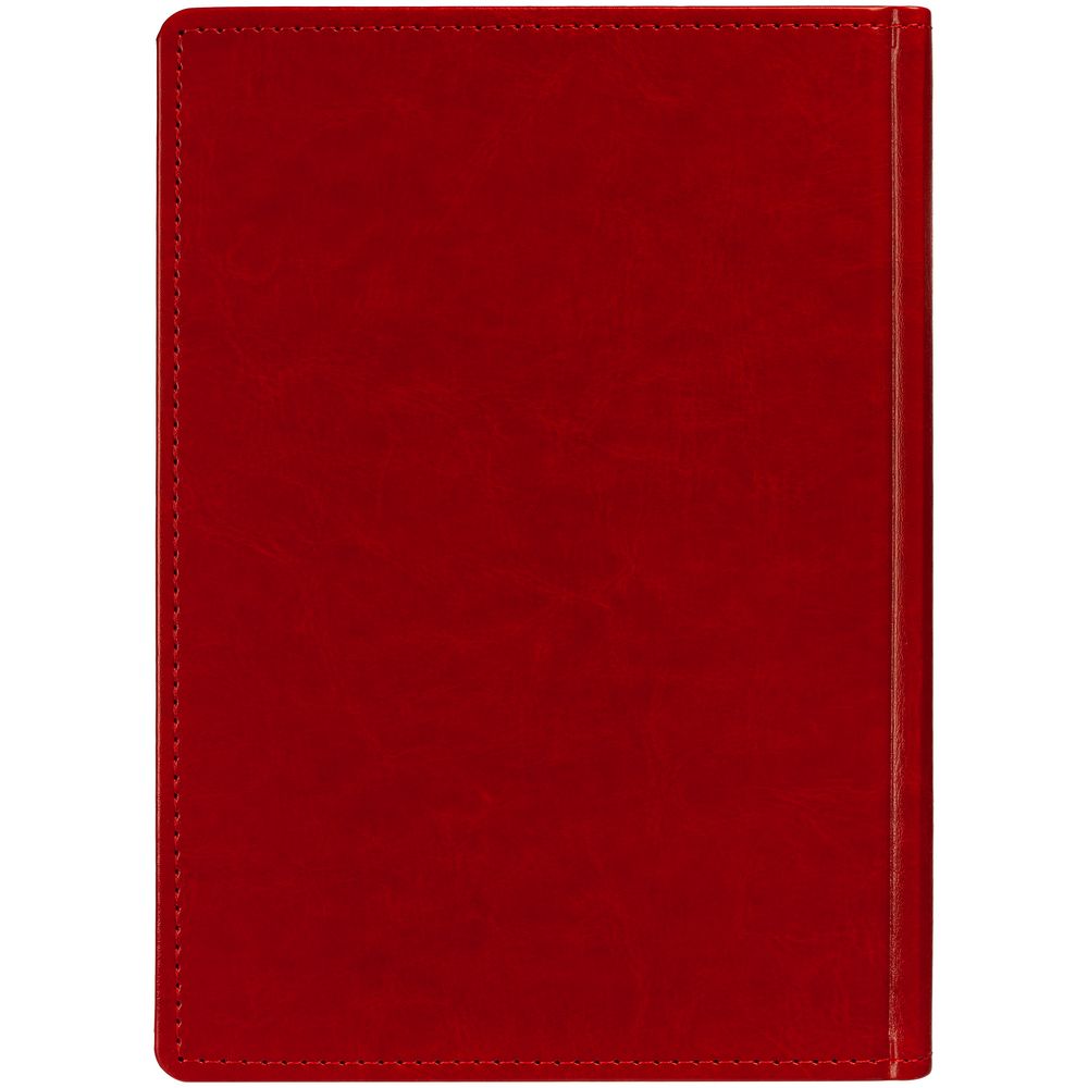 Ежедневник с твердой обложкой без поролона, выполнен из материала Nebraska, красный PP, дополнен ляссе и капталом в цвет обложки.