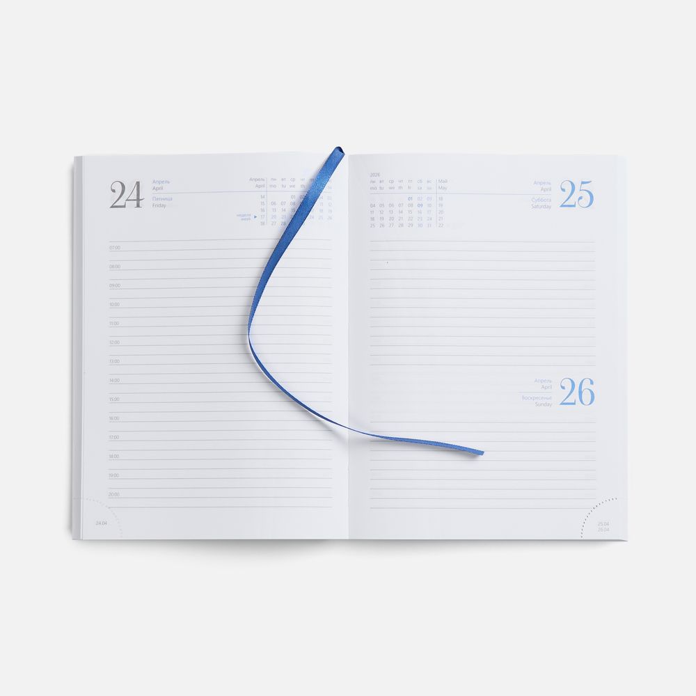 Ежедневник с твердой обложкой без поролона, выполнен из материала Nebraska, синий НН, дополнен ляссе и капталом в цвет обложки.