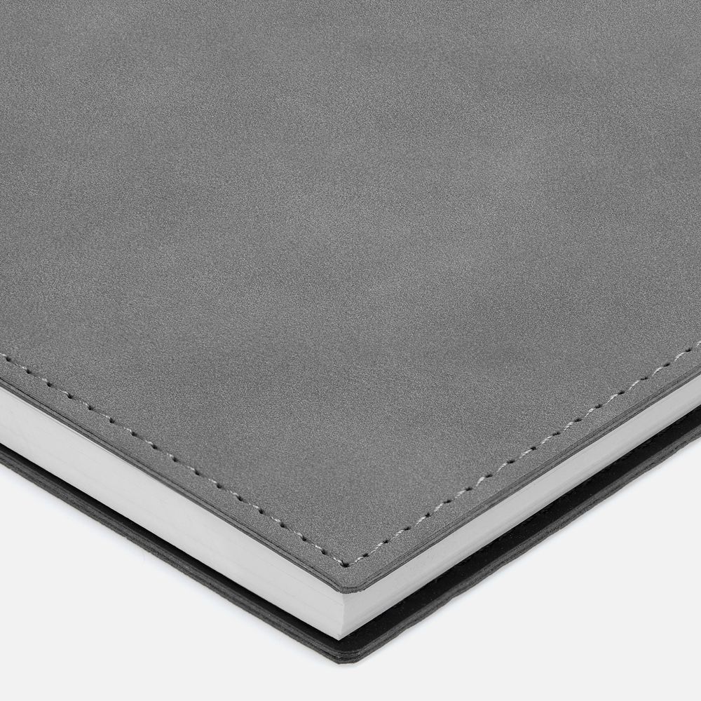 Ежедневник с интегральным переплетом, гибкой обложкой и обстрочкой по периметру на открытой пружине.