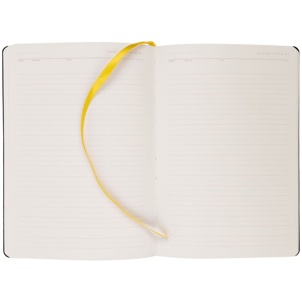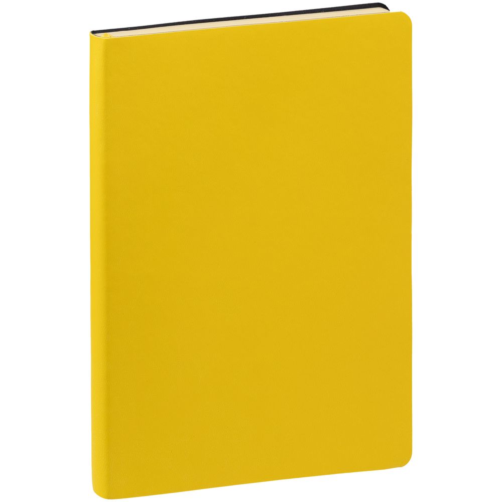Ежедневник с гибкой обложкой, выполнен из материала Latte, желтый, дополнен ляссе в цвет обложки.