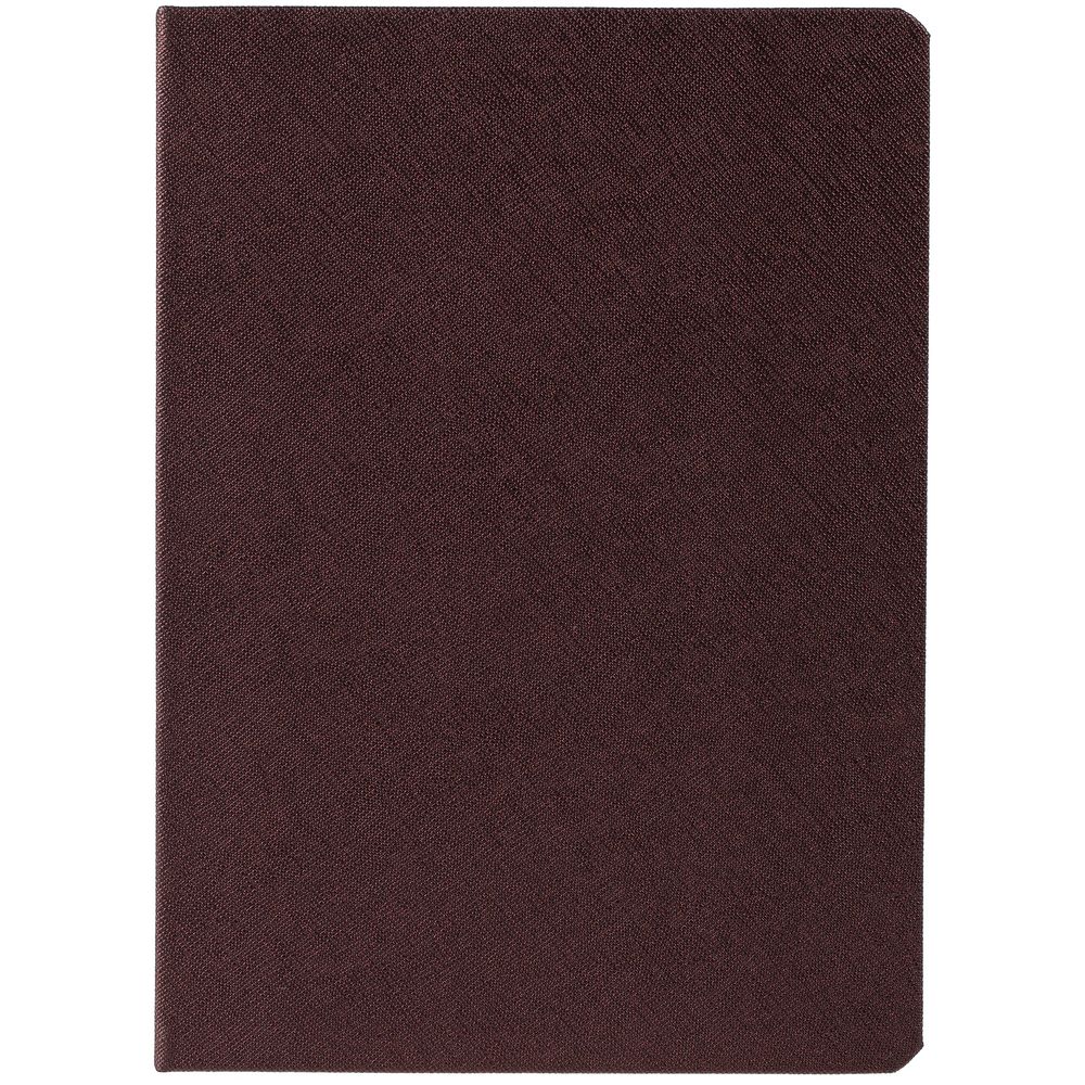 Ежедневник с твердой обложкой и золотистым обрезом, выполнен из материала Saffian, коричневый, дополнен ляссе в цвет обложки.