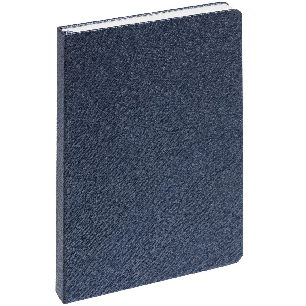 Ежедневник с твердой обложкой и серебристым обрезом, выполнен из материала Saffian, синий НН, дополнен ляссе в цвет обложки.