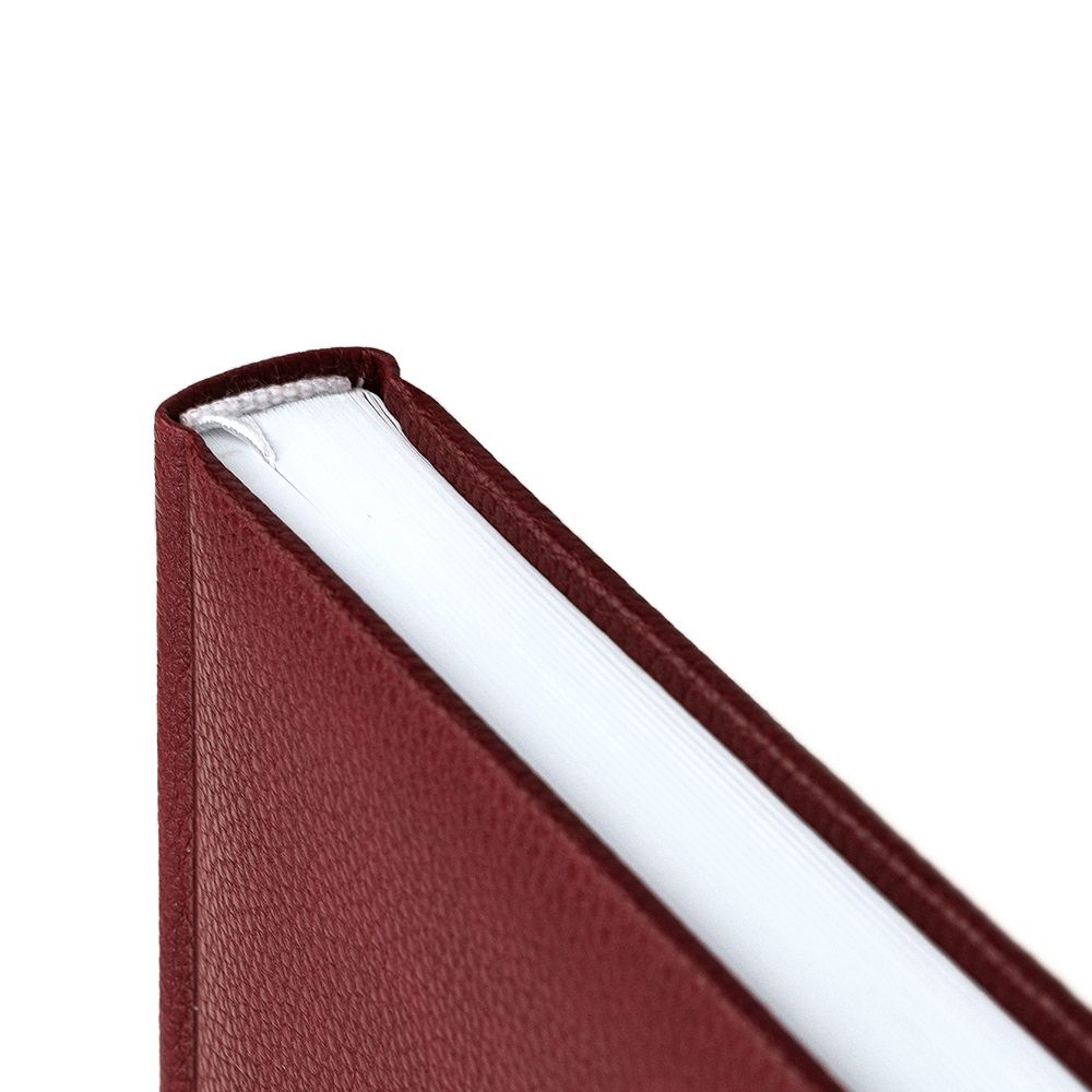 Ежедневник в твердой обложке c поролоном, выполнен из материала La Fite, красный РР, дополнен ляссе белого цвета.