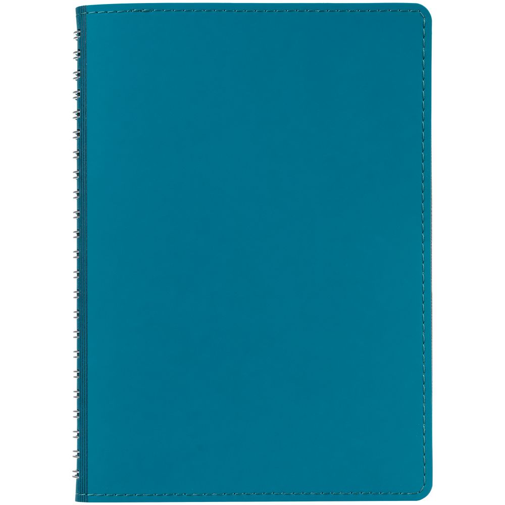 Ежедневник с гибкой обложкой, выполнен из материалов Soft Touch, цвет морской волны II и Nice touch, серый СС.