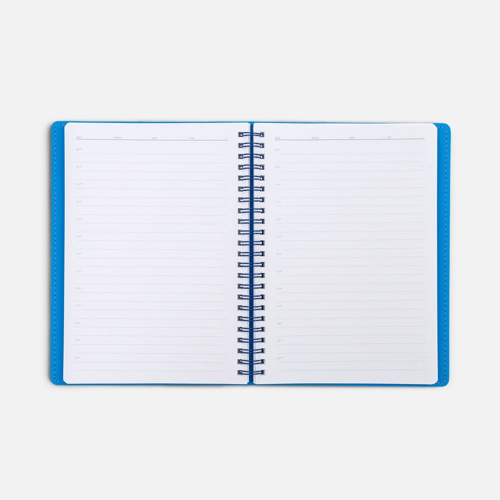 Ежедневник с гибкой обложкой, выполнен из материалов Soft Touch, синий и Nice Touch, голубой.