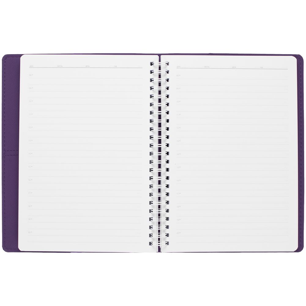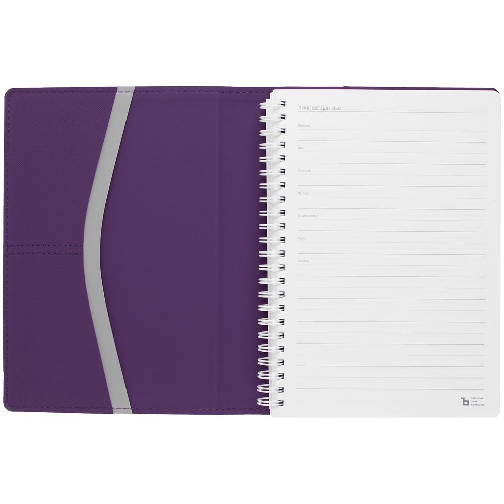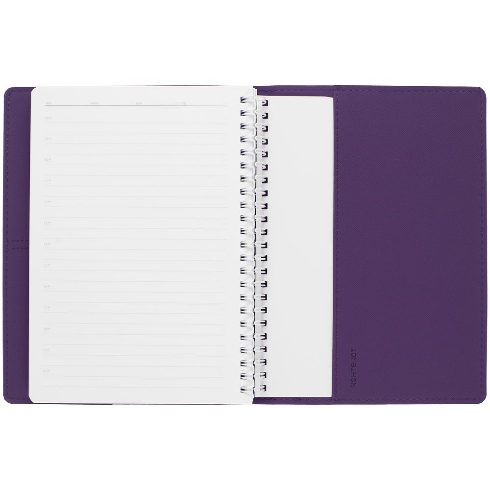 Ежедневник с твердой обложкой, выполнен из материалов Nice Touch, фиолетовый UU и Soft Touch серый, СС и фиолетовый.