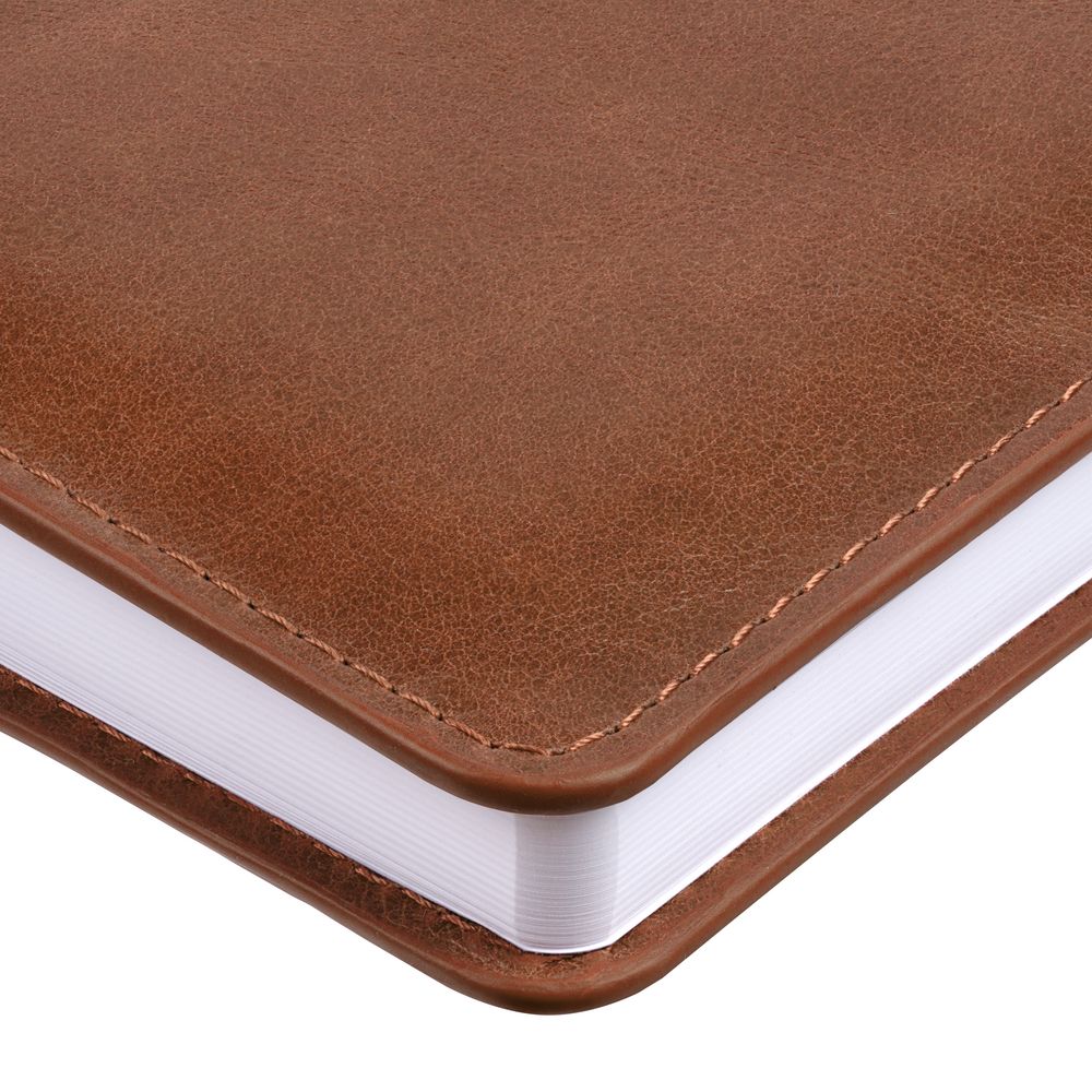 Ежедневник с полутвердой обложкой из натуральной кожи с поролоном. Каптал, репсовое ляссе и окрашенный срез обложки в цвет материала.
