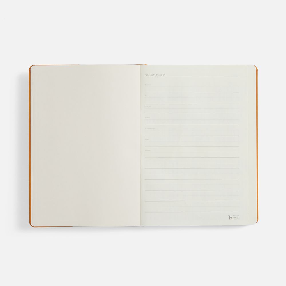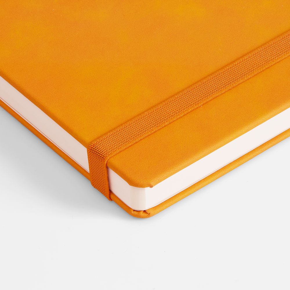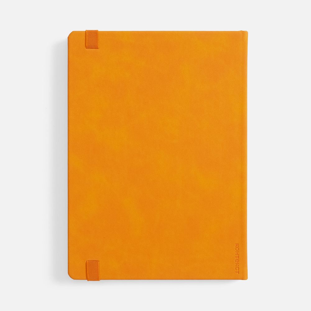Ежедневник с твердой обложкой, выполнен из материала Nubuck Touch, оранжевый OO, дополнен ляссе в цвет обложки.