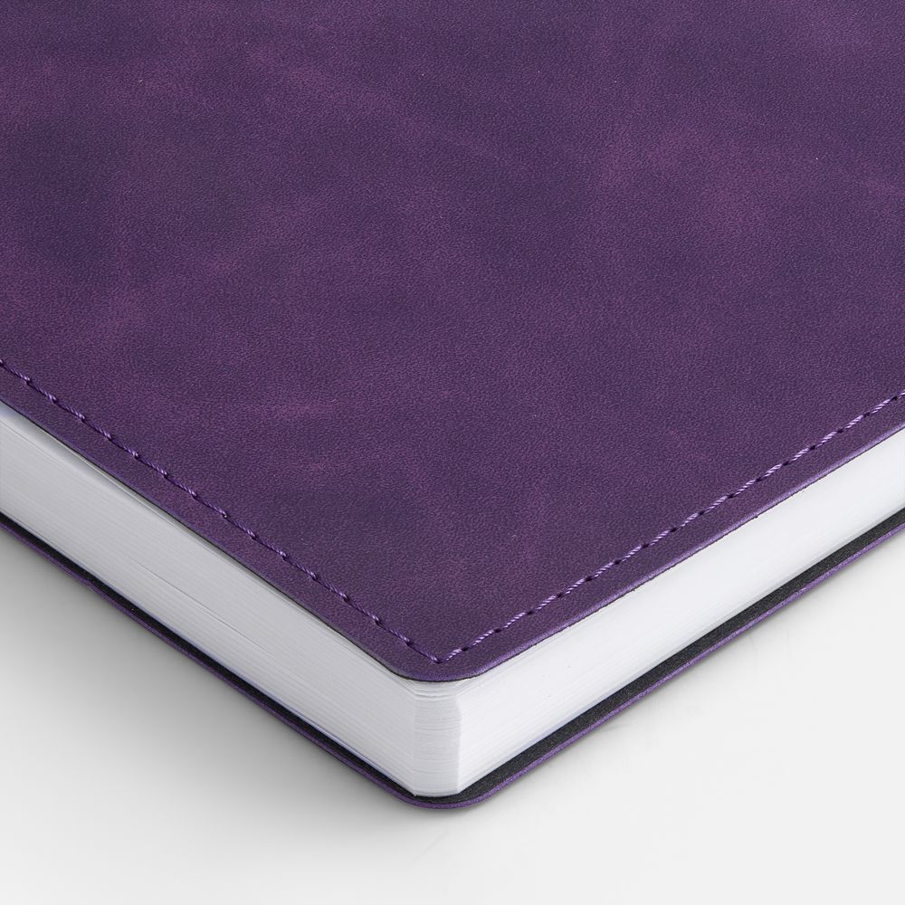 Ежедневник в клетку, с гибкой обложкой, выполнен из материала Nubuck Touch, фиолетовый UU, дополнен ляссе фиолетового цвета.